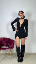 Abito , scollo profondo , choker , al collo , spacchetto a lato , taglia unica vestibilità consigliata da una S ad una L