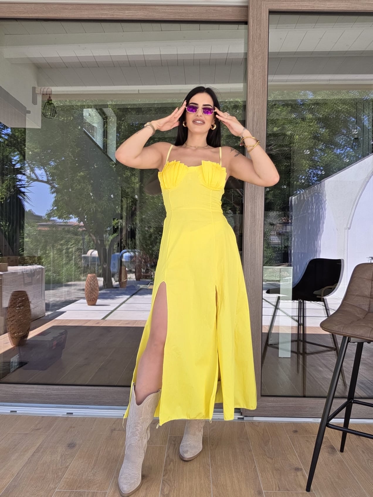 Abito in cotone , coppa preformata , bretelle regolabili , spacchi avanti , ed elastico tubolare sul retro , taglia unica vestibilità consigliata da una S ad una L
