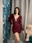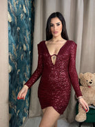 Abito in pailette , scollo a V , elasticizzato, taglia unica Vestibilità consigliata da una xs ad una L