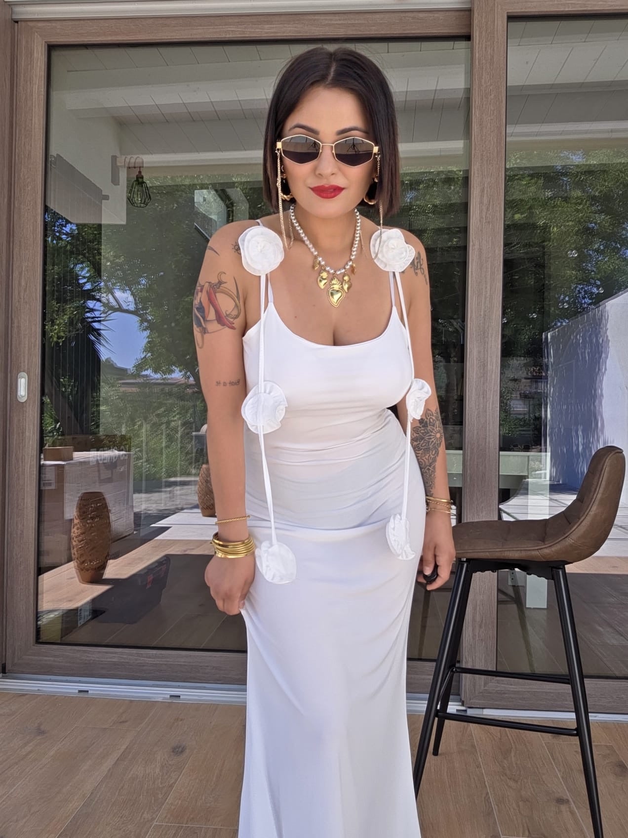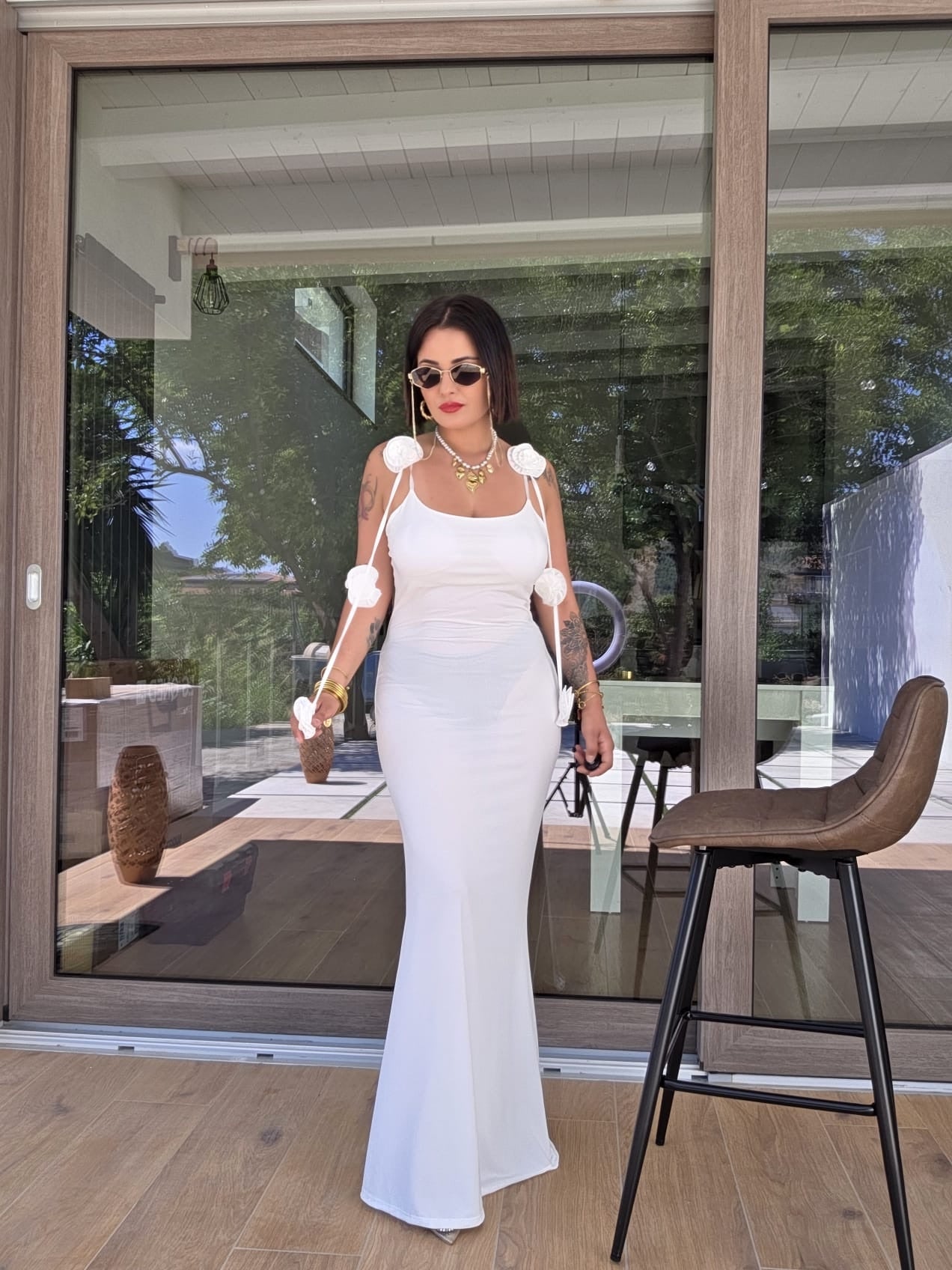 Abito in lycra , e velo , scollo sul retro , drappeggiato , taglia unica vestibilità consigliata da una S ad una L