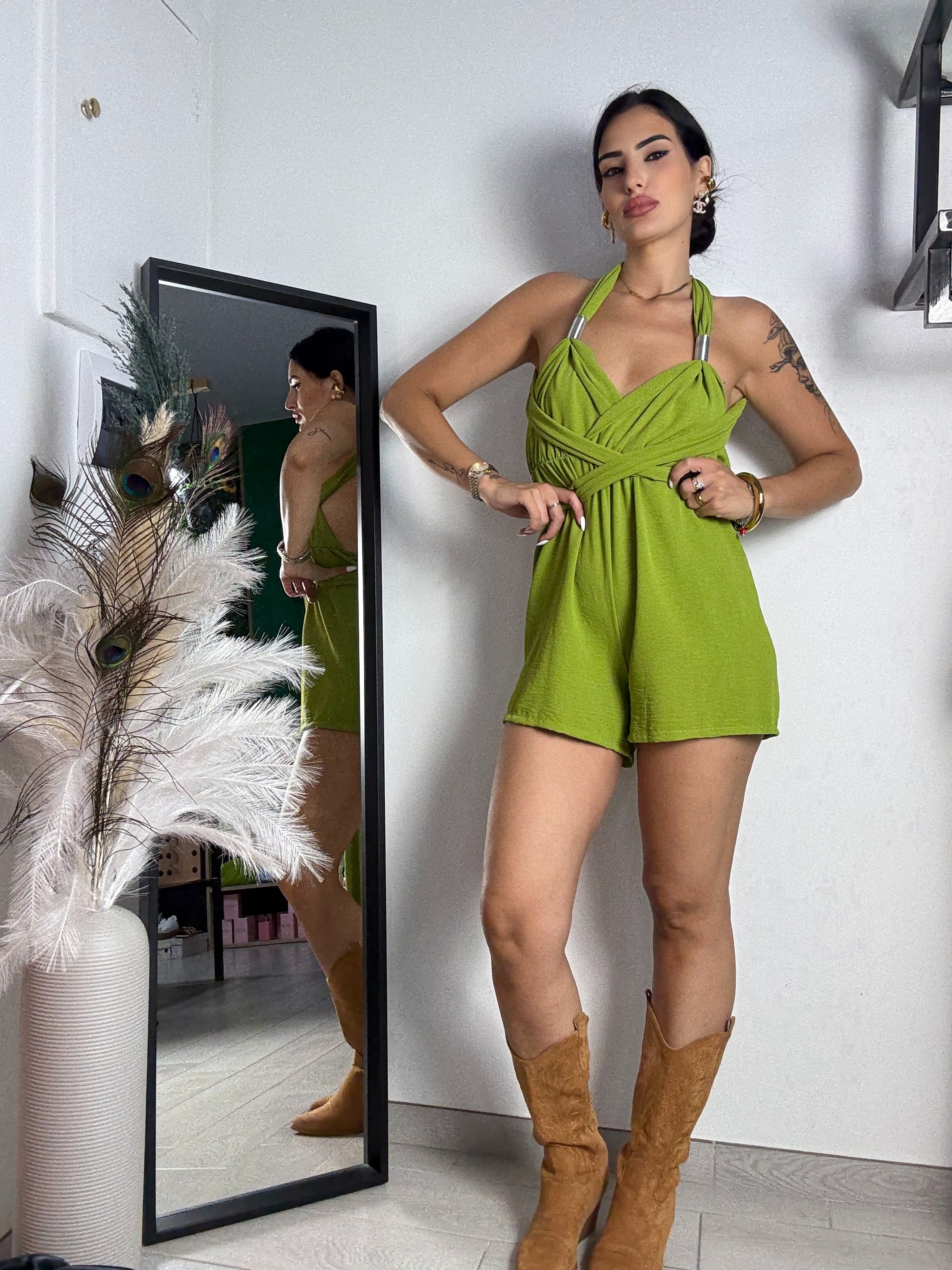 Tutina scollo a V incrocio sul retro, taglia unica vestibilità consigliata da una S ad una L