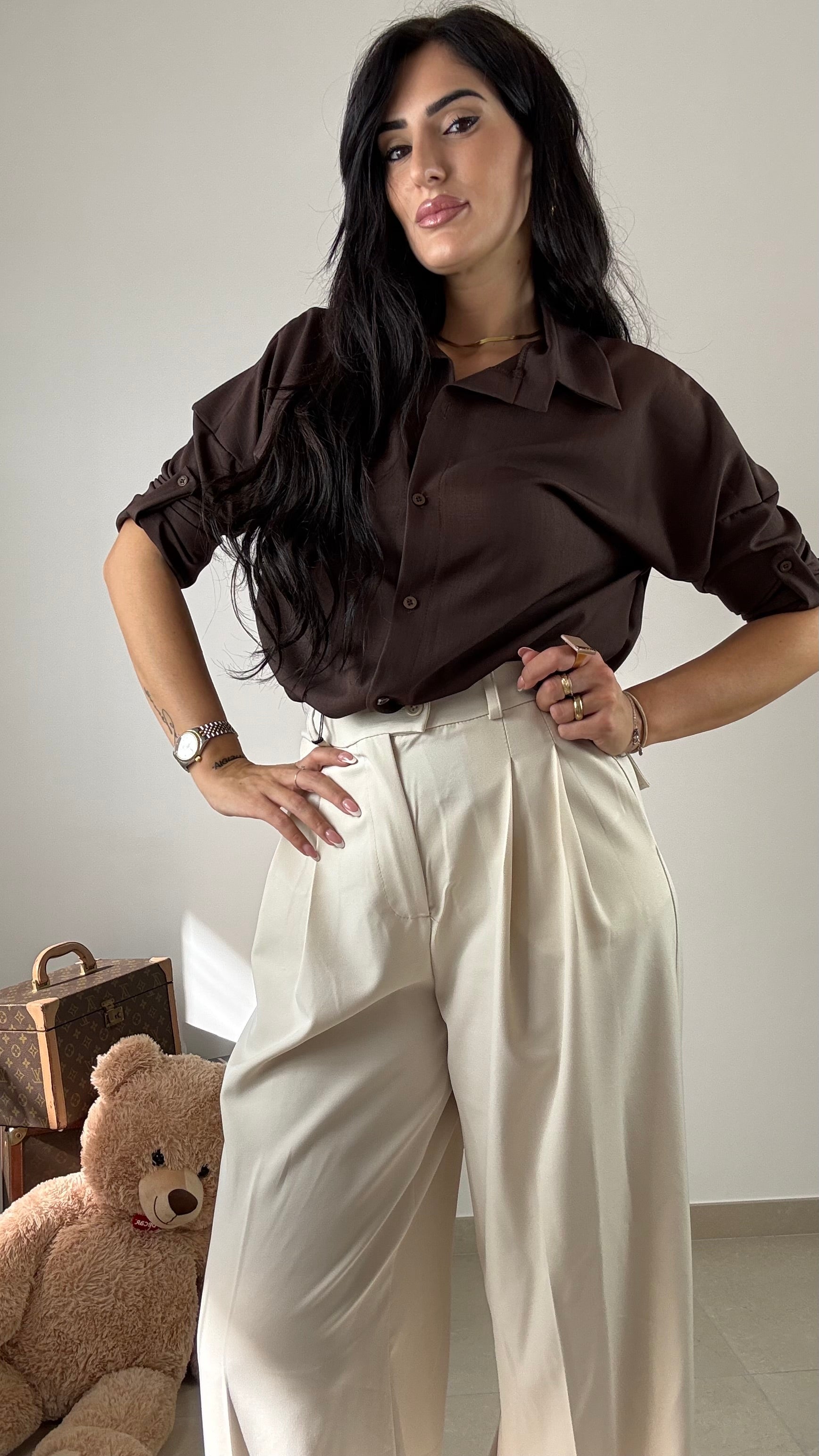 Camicia con risvoltino che potete tranquillamente togliere , taglia unica vestibilità consigliata da una S ad una L