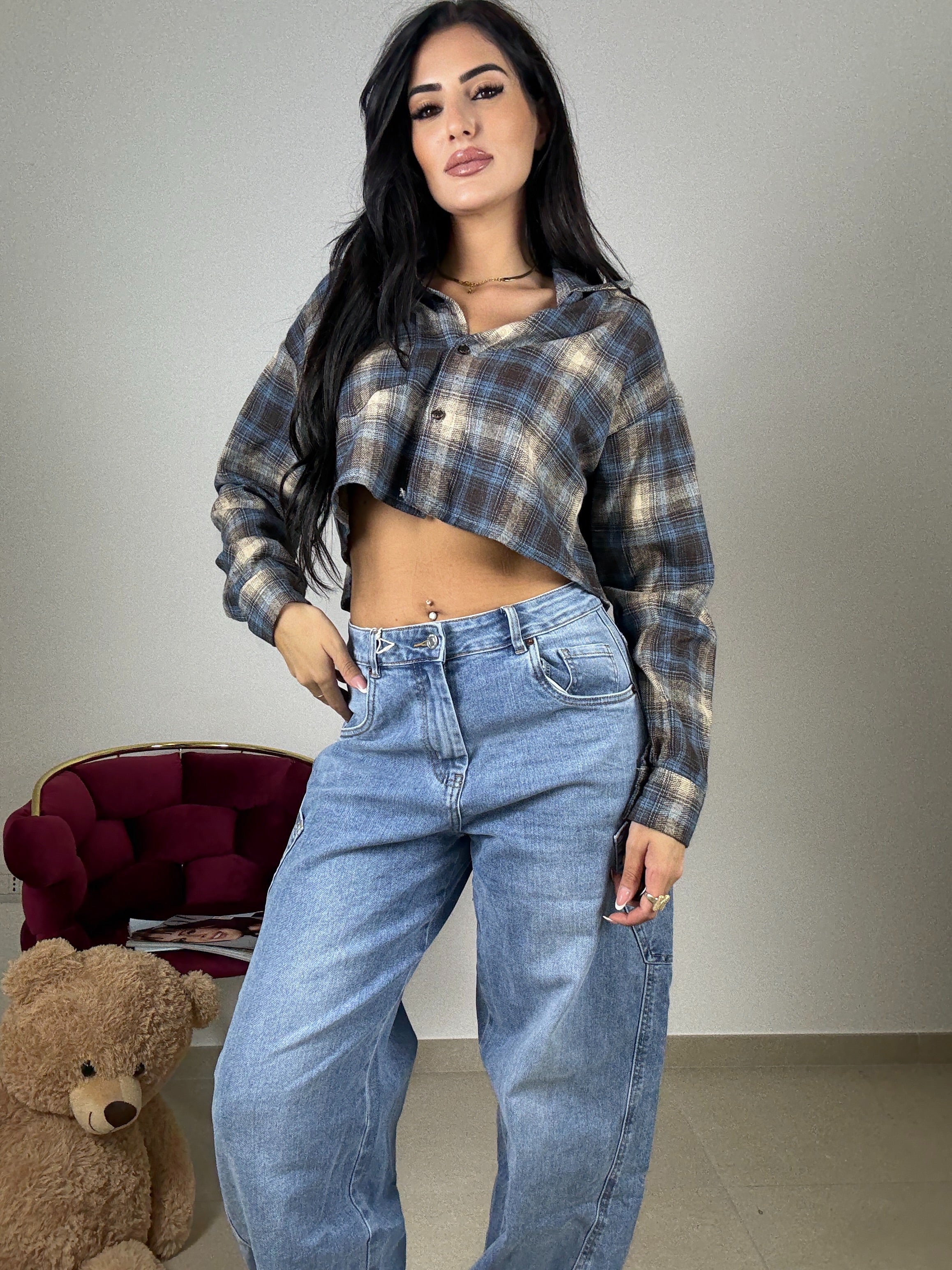 Camicia crop, taglia unica vestibilità consigliata da una S ad una L