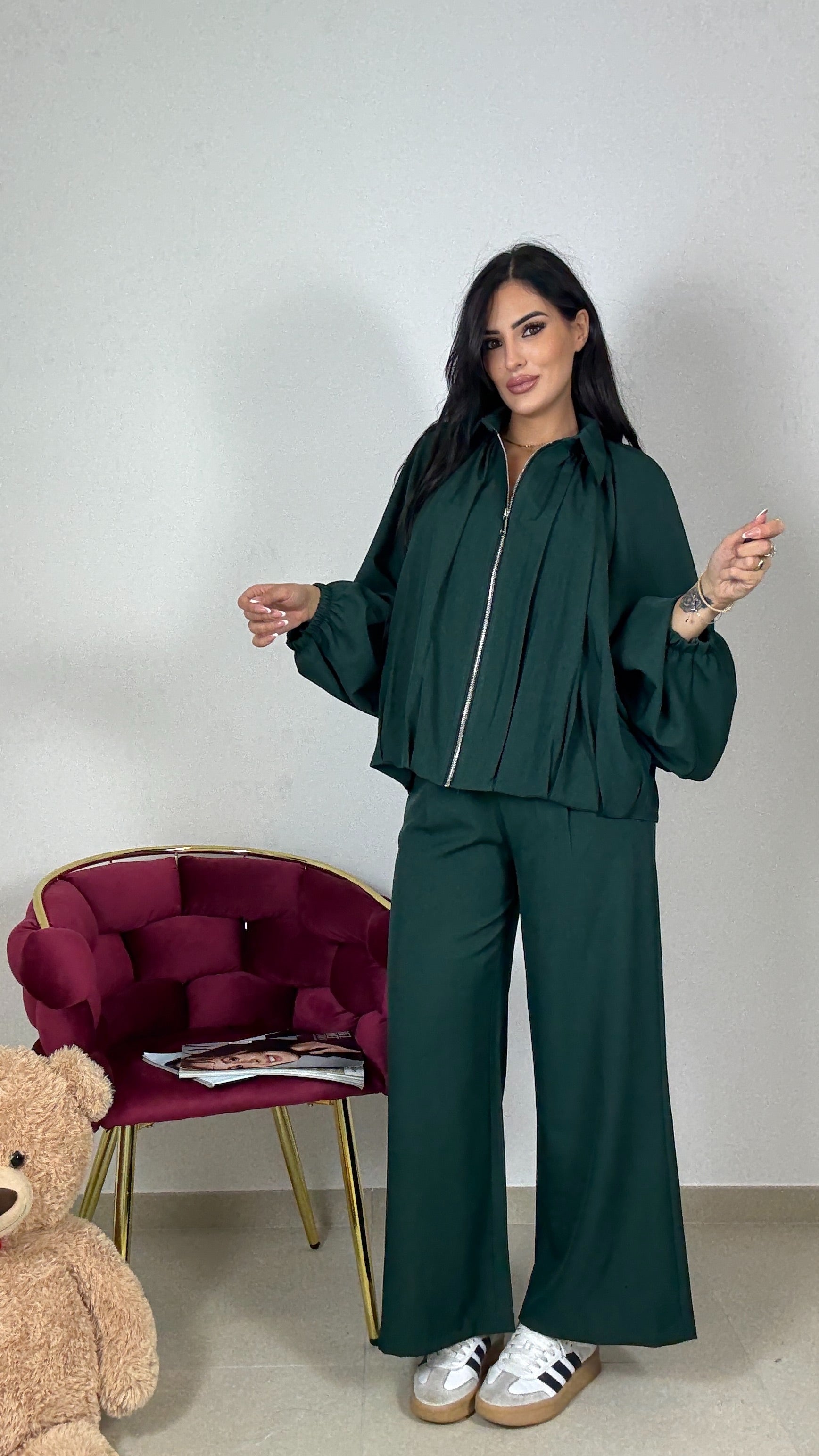 Coordinato , vi arriveranno a casa due pezzi , felpa modello ballons con zip , pantalone a palazzo , con molla in vita, taglia unica vestibilità consigliata da una S ad una L