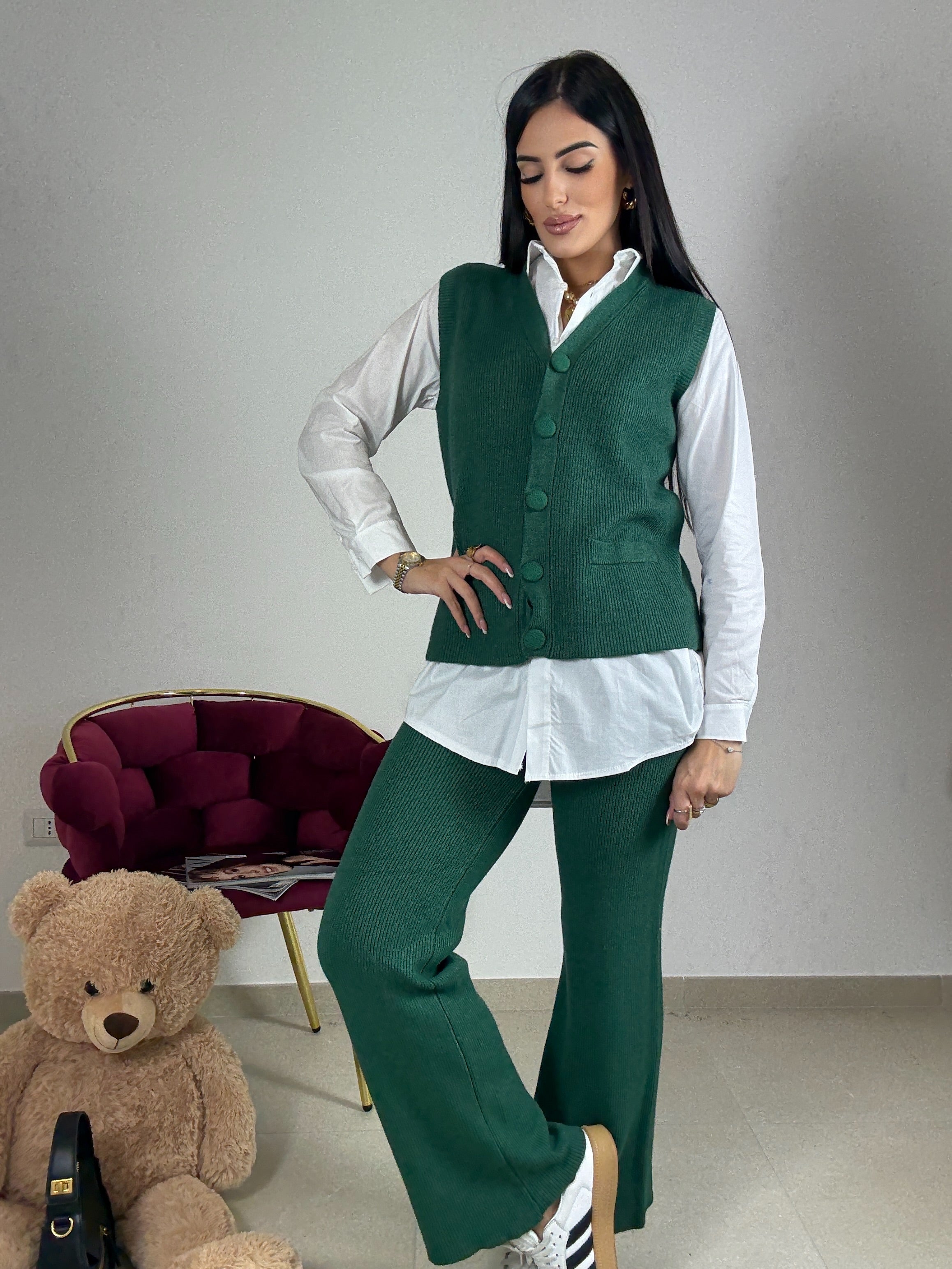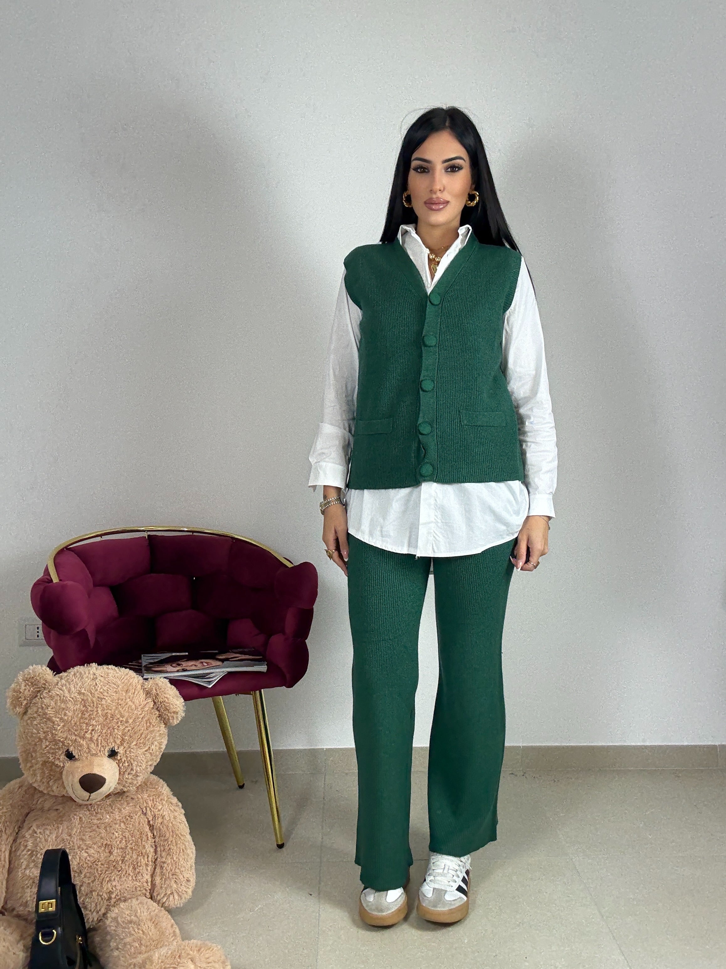 Coordinato in lanetta  , elastico, gilet chiusura con bottoni , pantalone con elastico in vita e gamba dritta , taglia unica vestibilità consigliata da una S ad una L