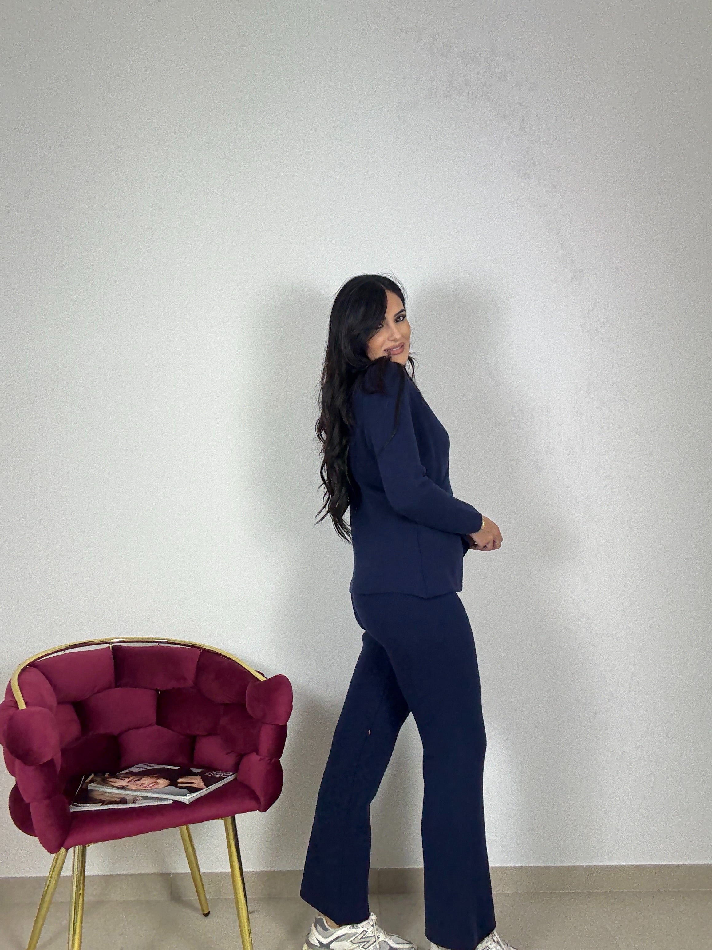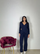 Coordinato in lanetta caldo , comodo e morbido, taglia unica elasticizzato, pantalone con molla in vita , maglia scollo a V e dettaglio in oro , vestibilità consigliata da una S ad una L