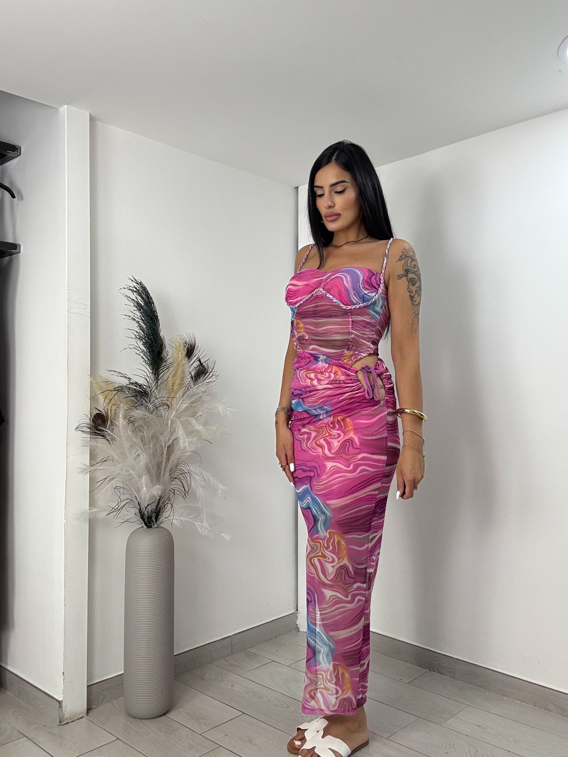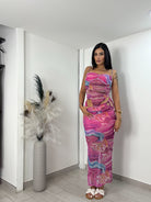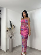 Vi arriveranno a casa due pezzi top coppa preformata , e gonna con elastico in vita e spacco laterale , taglia unica vestibilità consigliata da una S ad una L