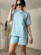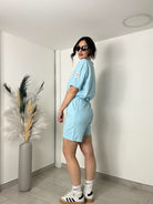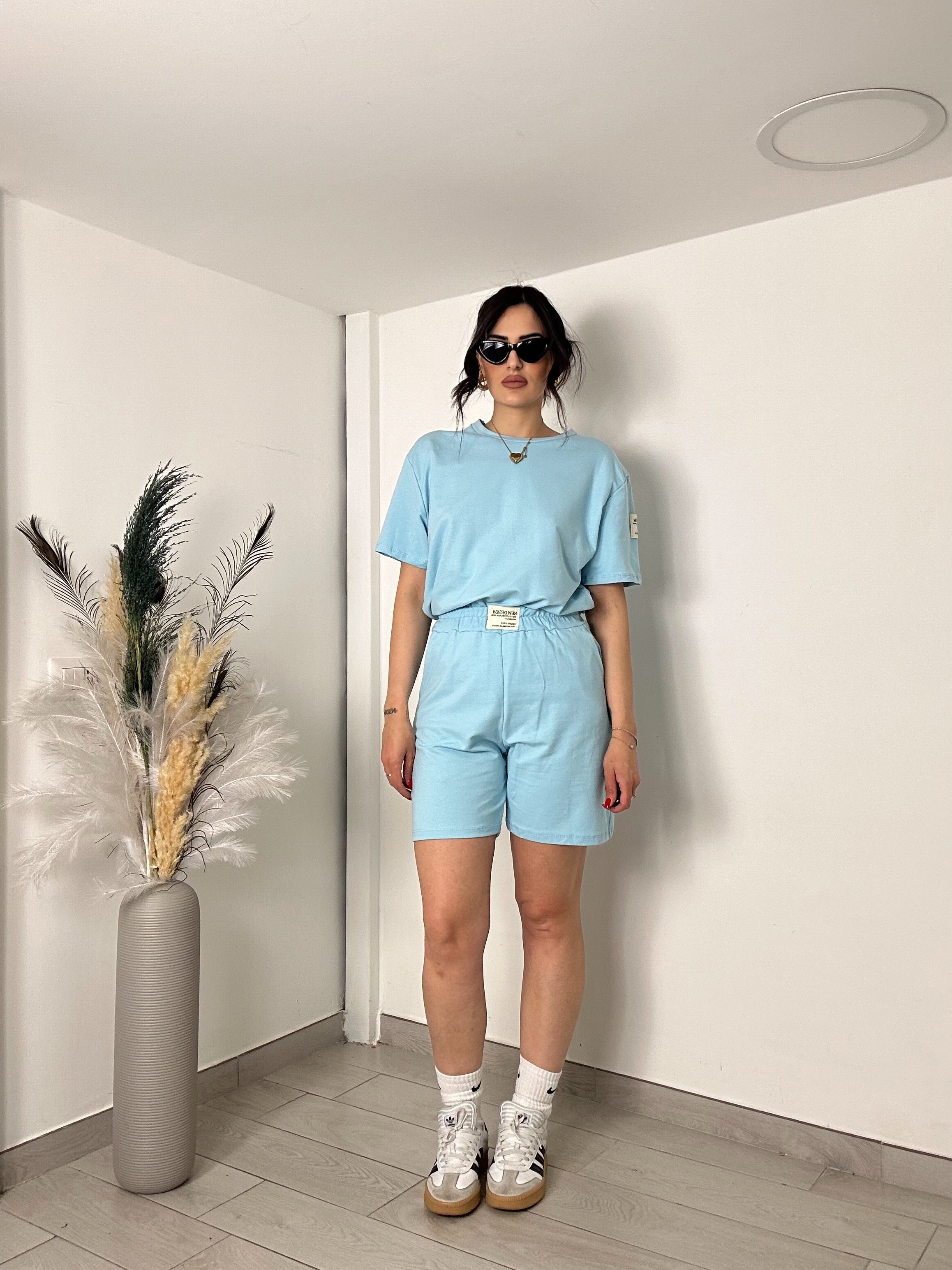 Vi arriveranno a casa due pezzi , t-shirt modello over , che potete tranquillamente renderla più corta mettendola al interno del pantaloncino, pantaloncino lunghezza regolare , elastico in vita, e tasche invisibili . Taglia unica Vestibilità consigliata da una s ad una XL
