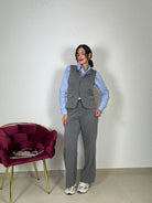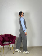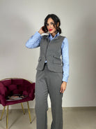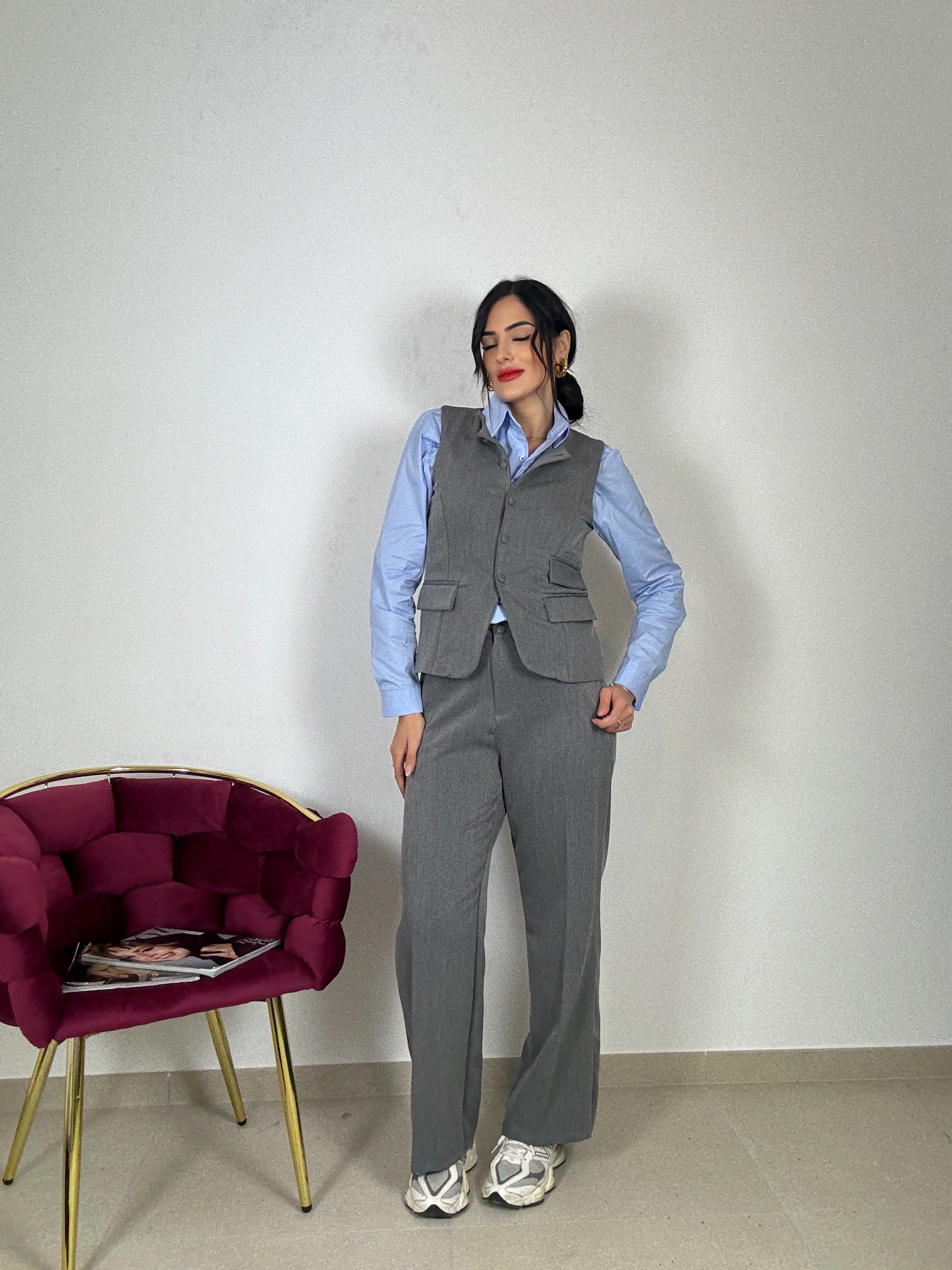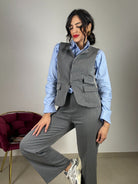 Tailleur , in versione invernale , caldo , gilet con chiusura con i bottoncini, e finte tasche , pantalone gamba dritta , con elastico in vita sul retro , taglia unica vestibilità consigliata da una S ad una L