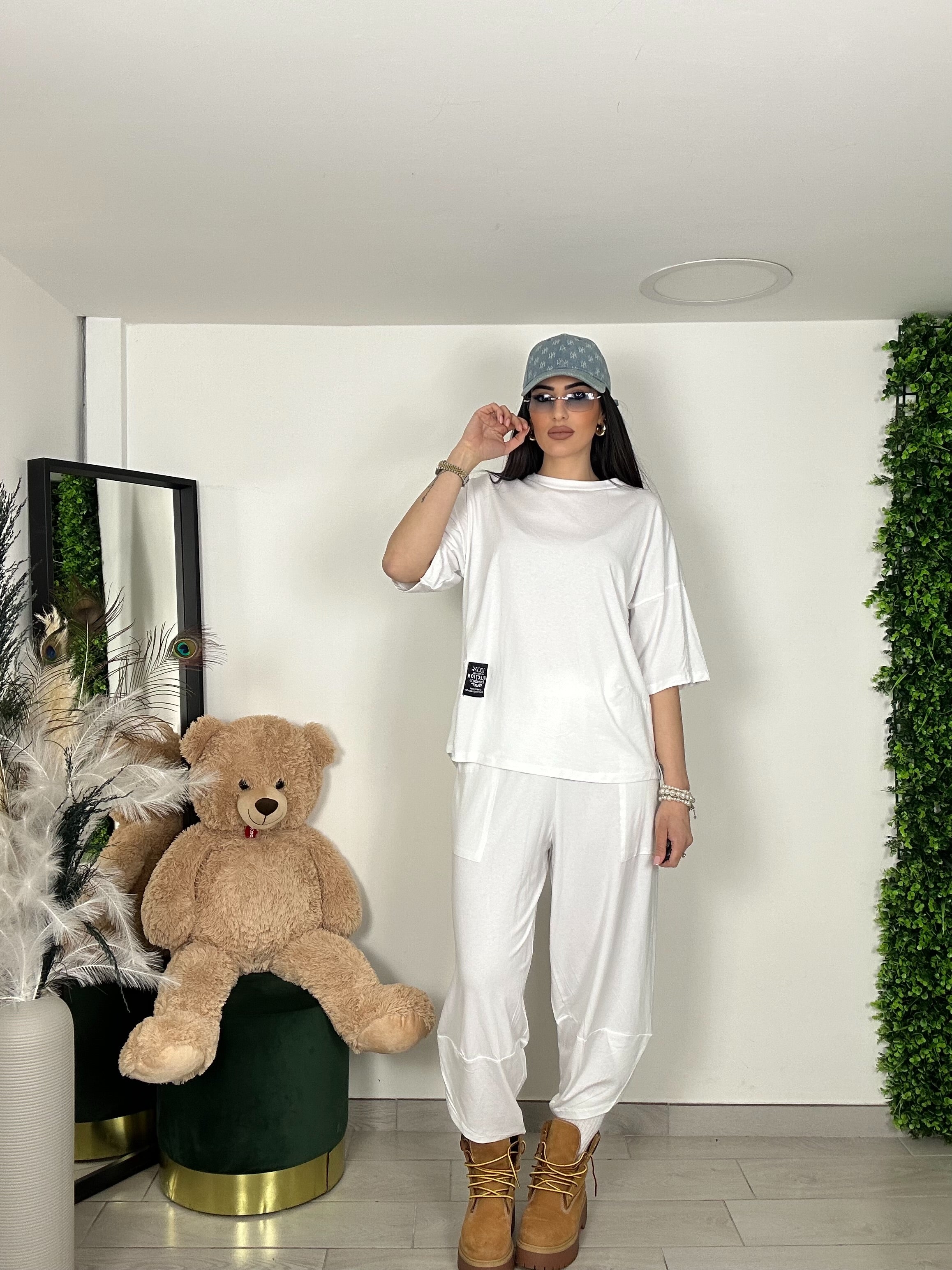 Completo tuta , versione primavera/estate , maglia modello over mezza manica , pantalone modello ballon molla in vita , taglia unica ottima Vestibilità, consigliato da una s ad una xxl