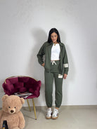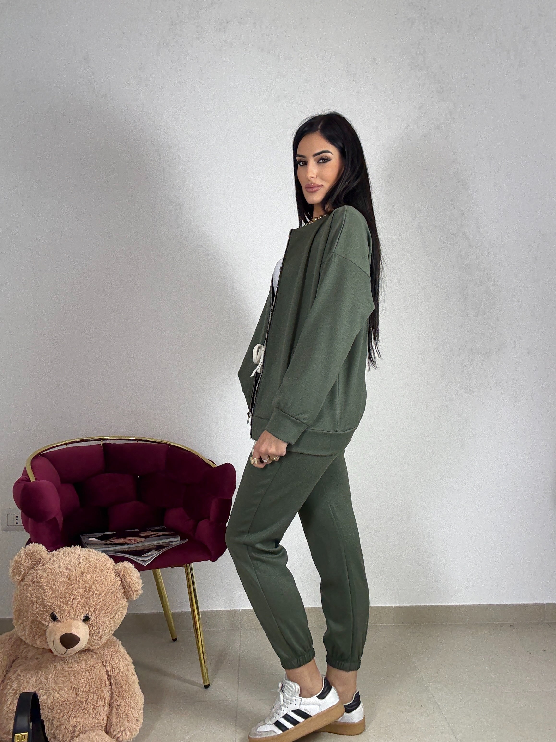 Vi arriveranno a casa due pezzi felpa con zip , e panatalone con elastico in vita e alle caviglie , taglia unica vestibilità consigliata da una S ad una L