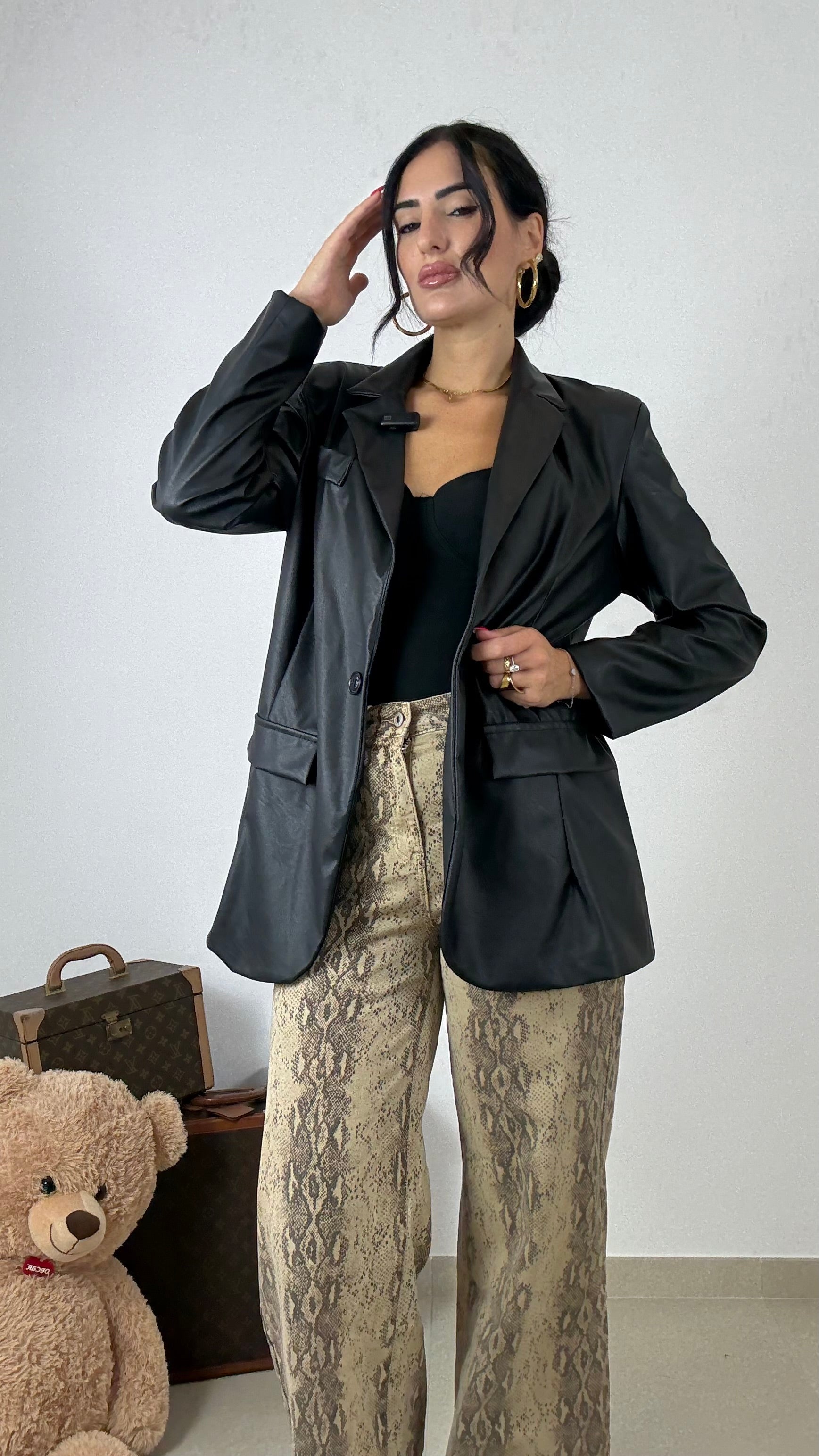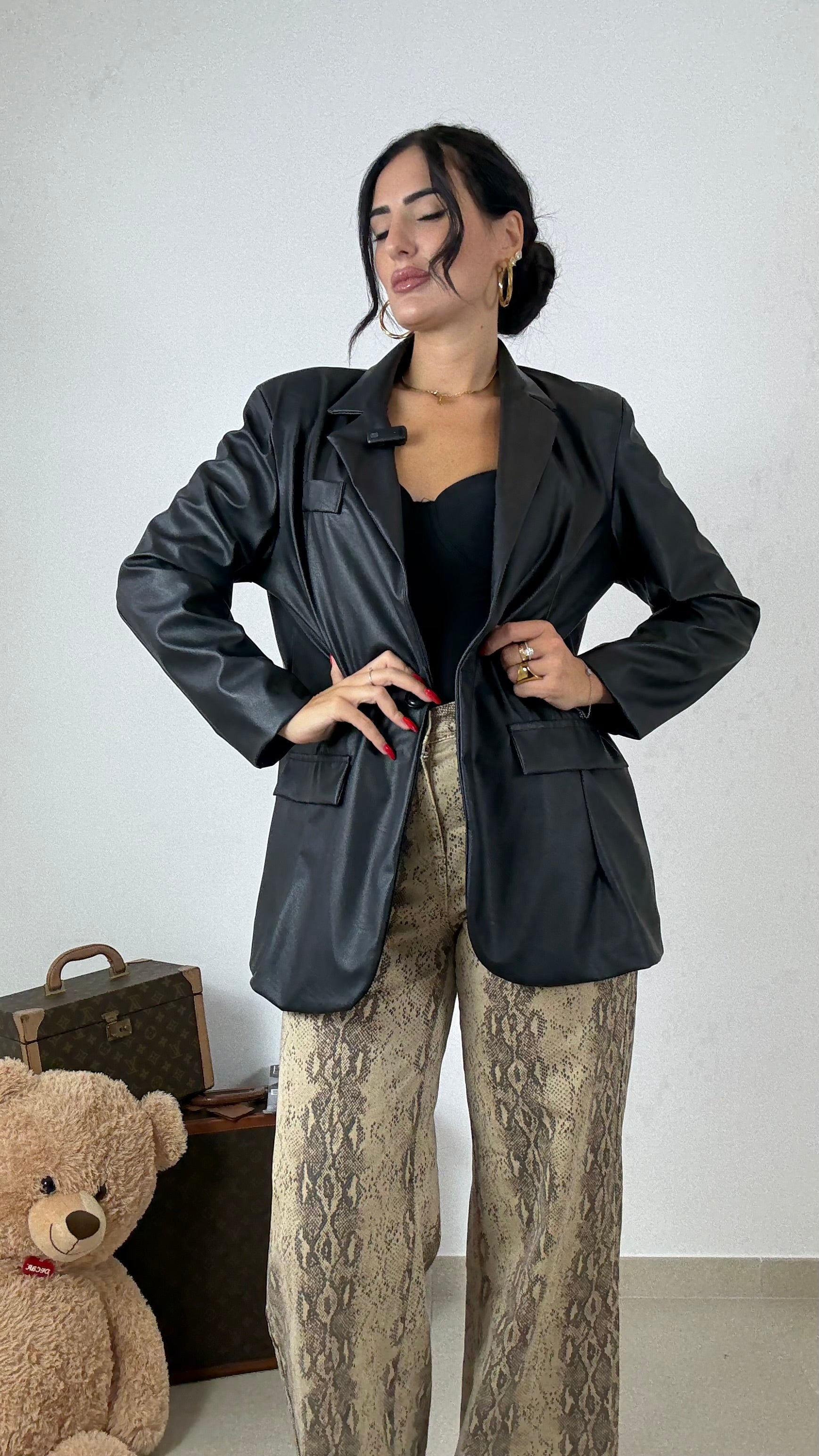 Giacca in similpelle , chiusura con bottone avanti , spallina preformata, taglia unica vestibilità consigliata da una S ad una L