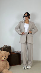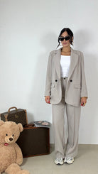 Tailleur giacca chiusura doppio petto , spalline preformata , pantalone a palazzo tasche taglio America , chiusura con zip e bottone , e molla sul retro , taglia unica vestibilità consigliata da una S ad una L