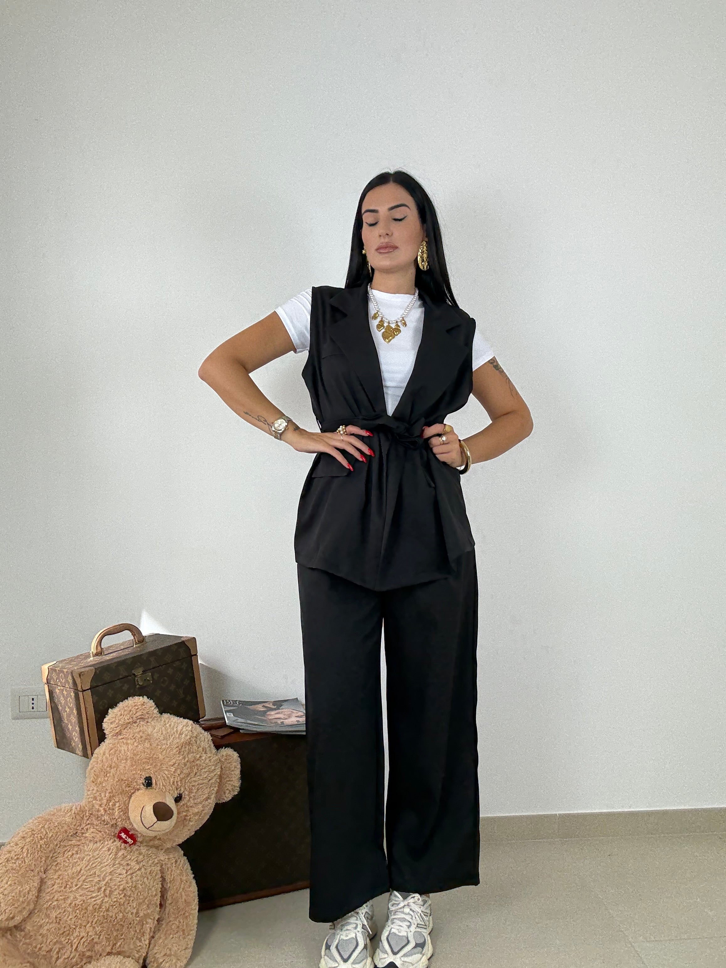 Tailleur , giacca a gilet con coulisse in vita , e pantalone con elastico in vita , taglia unica vestibilità consigliata da una S ad una L