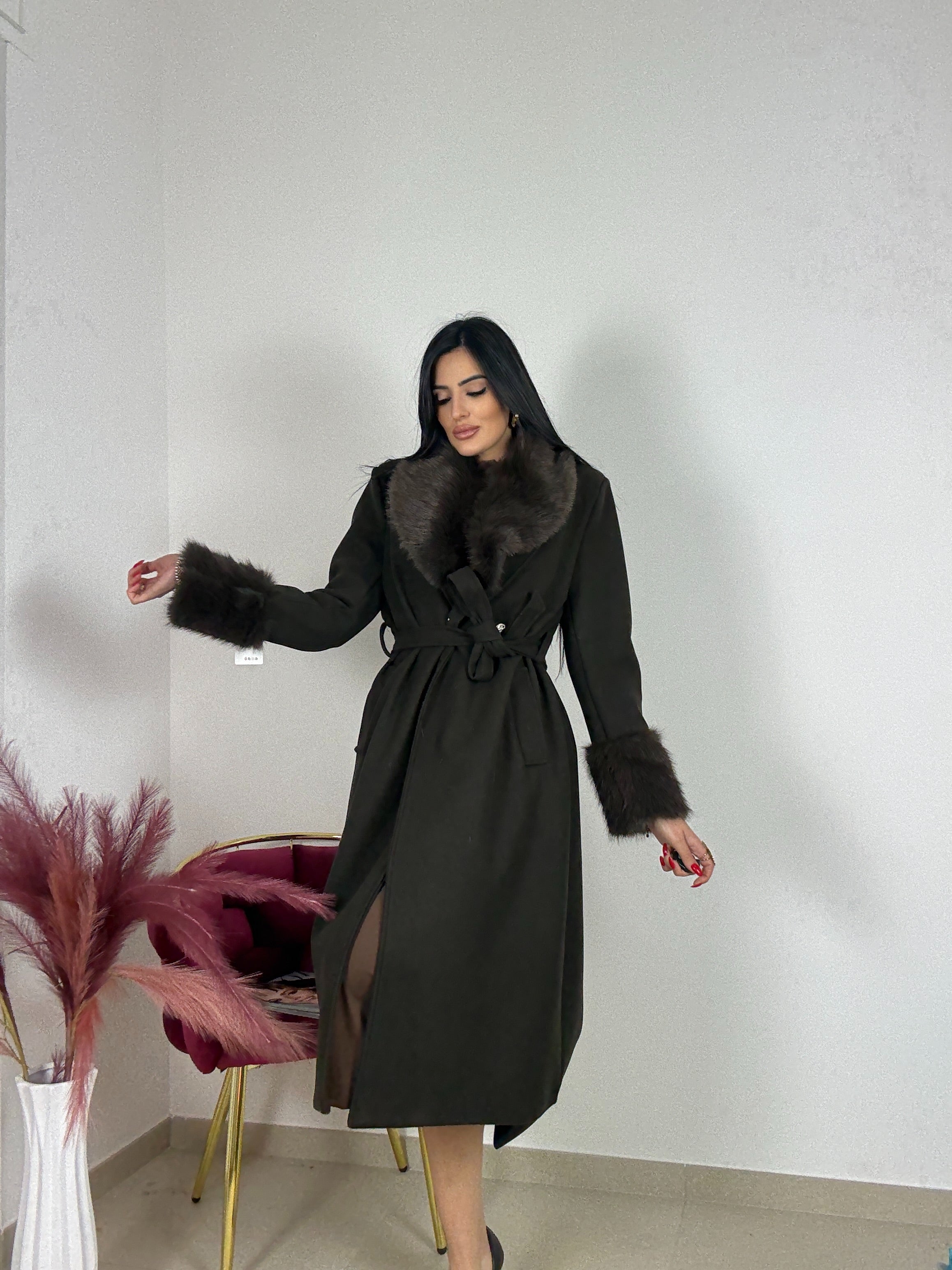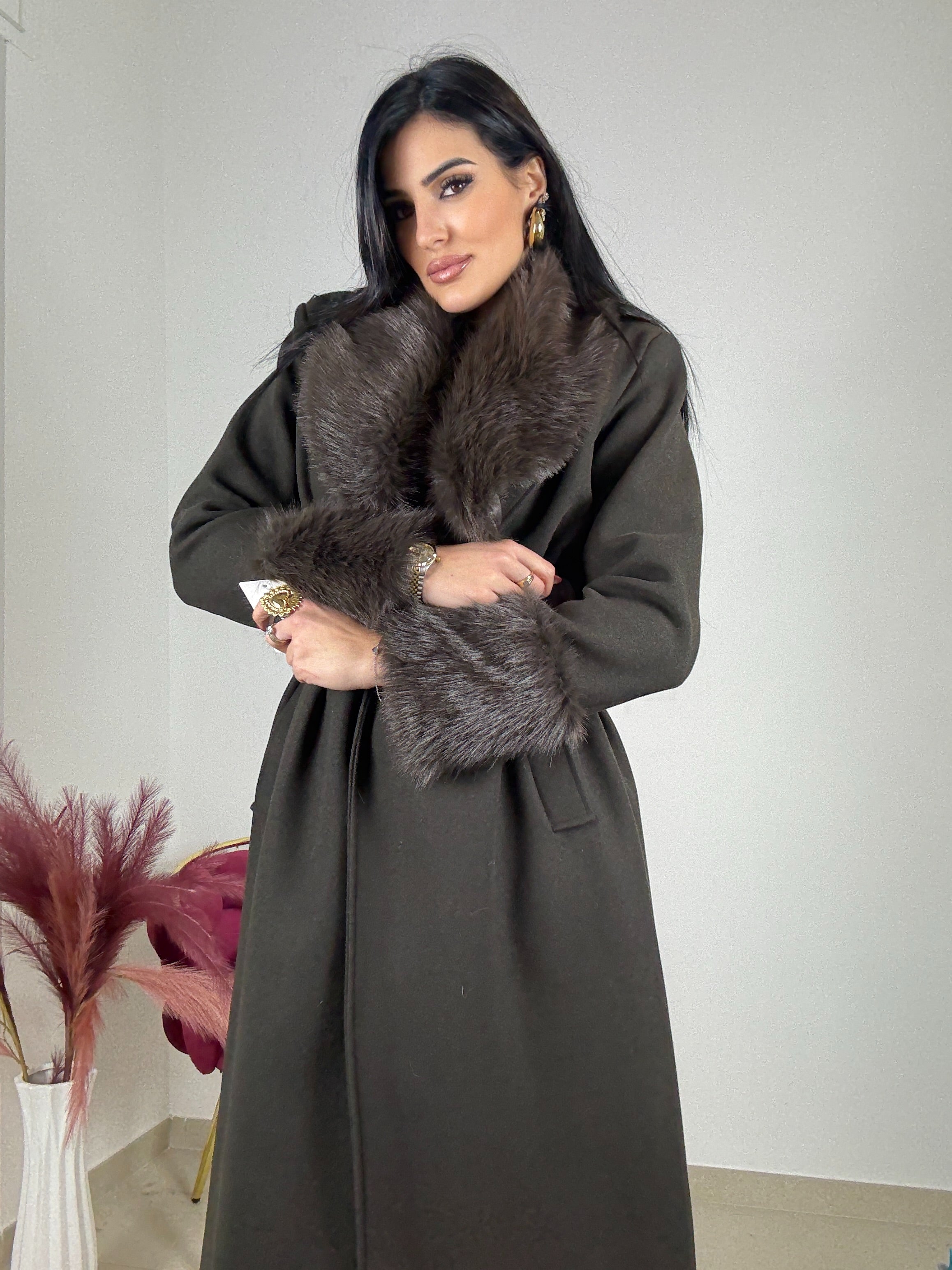 Cappotto con collo in eco-fur , e polisini eco-fur , taglia unica vestibilità consigliata da una S ad una L