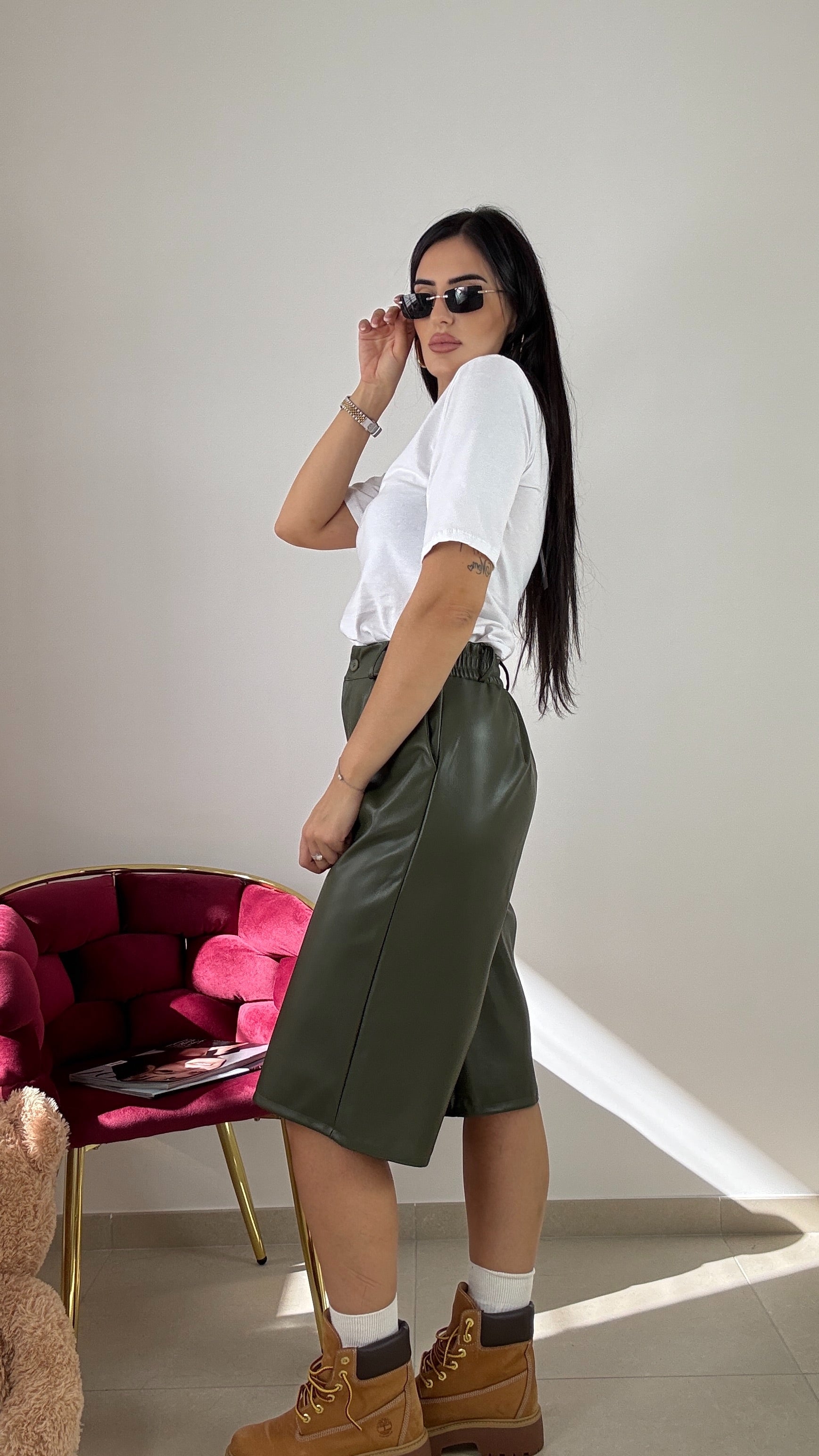 Bermuda in similpelle , vita alta , taglia unica vestibilità consigliata da una S ad una L