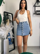 gonna in jeans , tessuto non elastico , vita alta , vestibilità regolare
