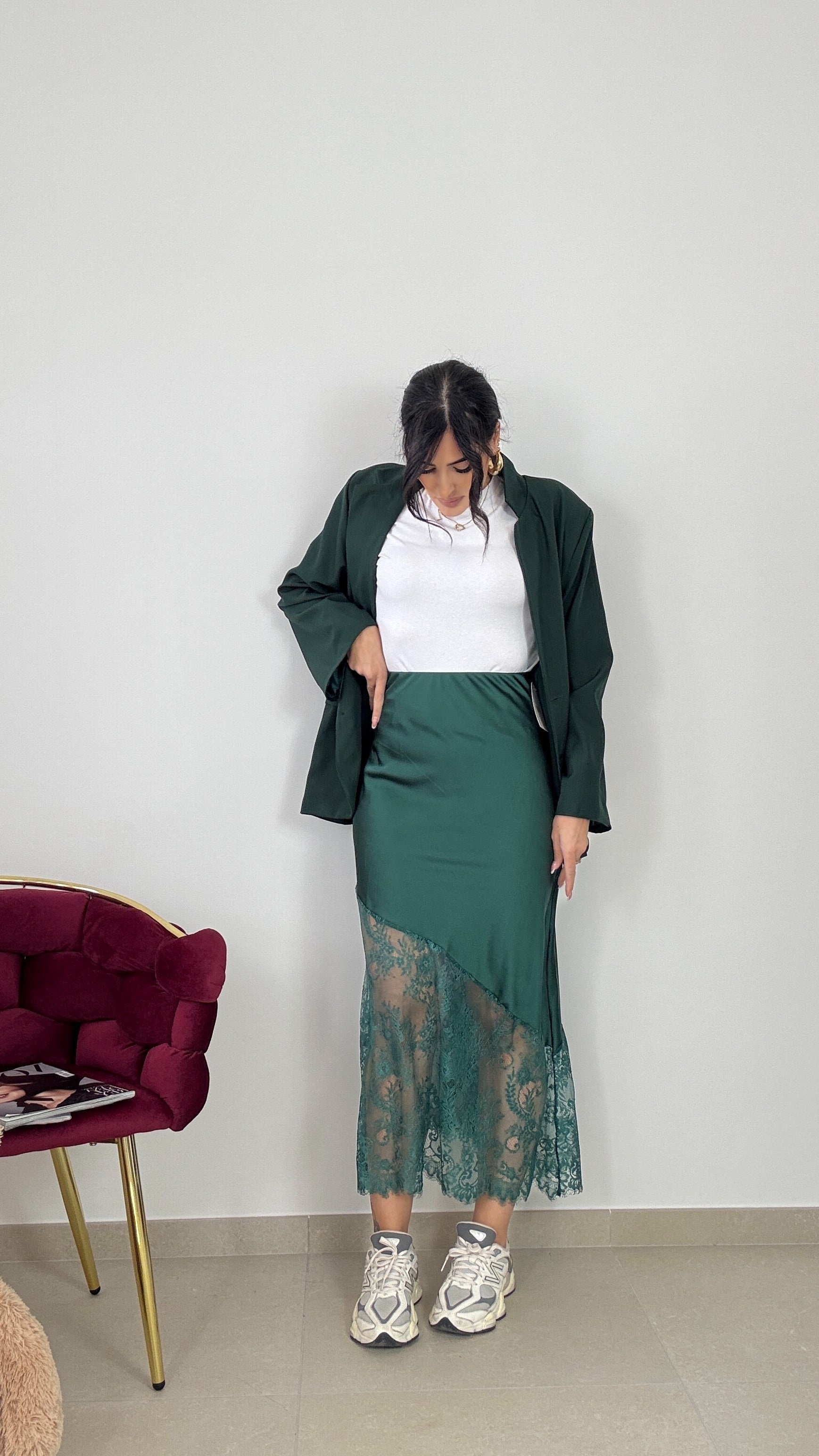 Gonna in satin e macramè , molla in vita , taglia unica vestibilità consigliata da una S ad una L