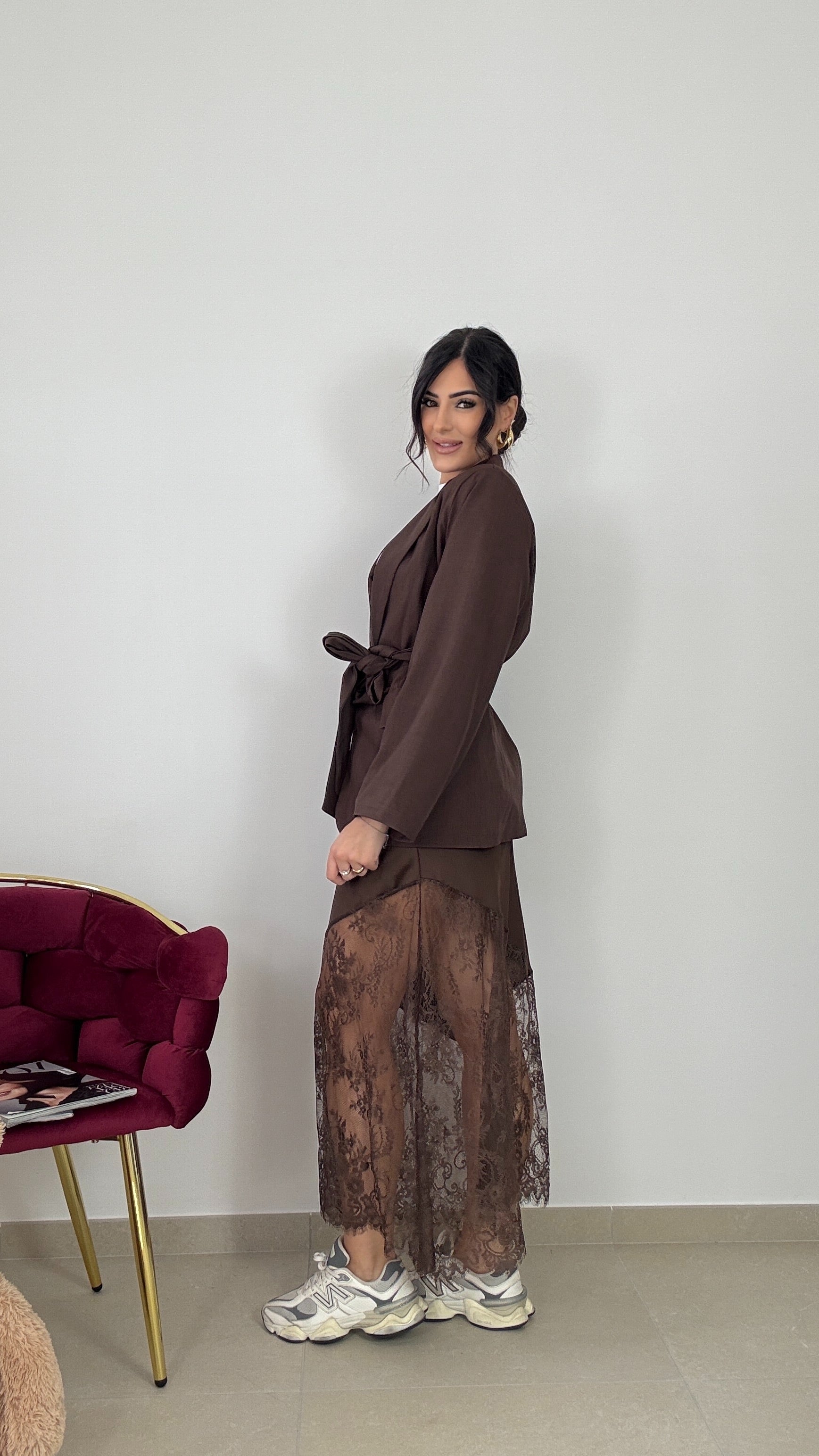 Gonna in satin e macramè , molla in vita , taglia unica vestibilità consigliata da una S ad una L