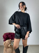 Pantaloncino in eco pelle , molla in vita , taglia unica vestibilità consigliata da una S ad una L