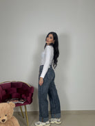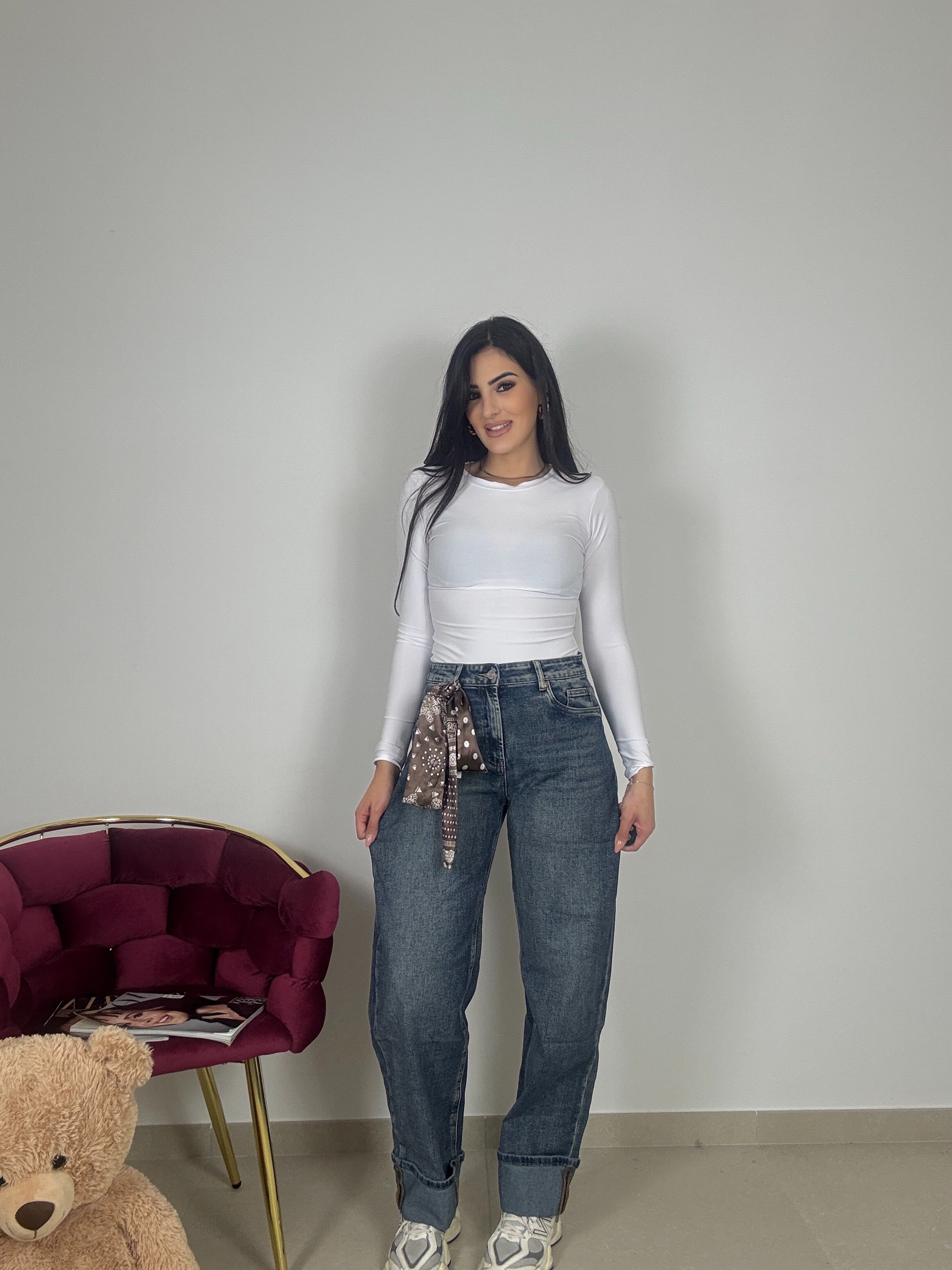Jeans modello ballons con piegone , vita alta , vestibilità regolare