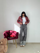 Jeans vita alta , con piegone , elasticizzato , vestibilità regolare