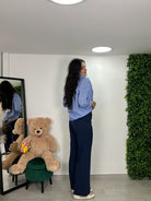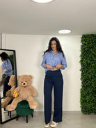 Pantalone , in tessuto classico , vita alta , chiusura con bottone , a palazzo , Vestibilità regolare