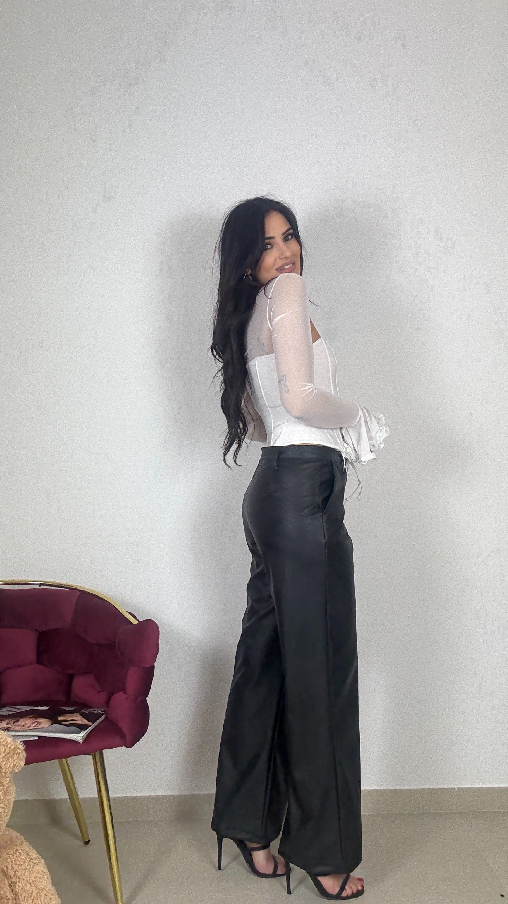 Pantalone , vita alta , se prendete una taglia in più , potete indossarlo anche a vita bassa , vestibilità regolare in similpelle