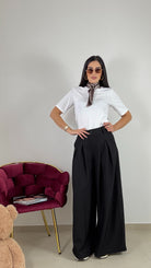 Pantalone vita alta , molla in vita sul retro , pence avanti , taglia unica vestibilità consigliata da una S ad una L