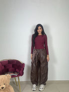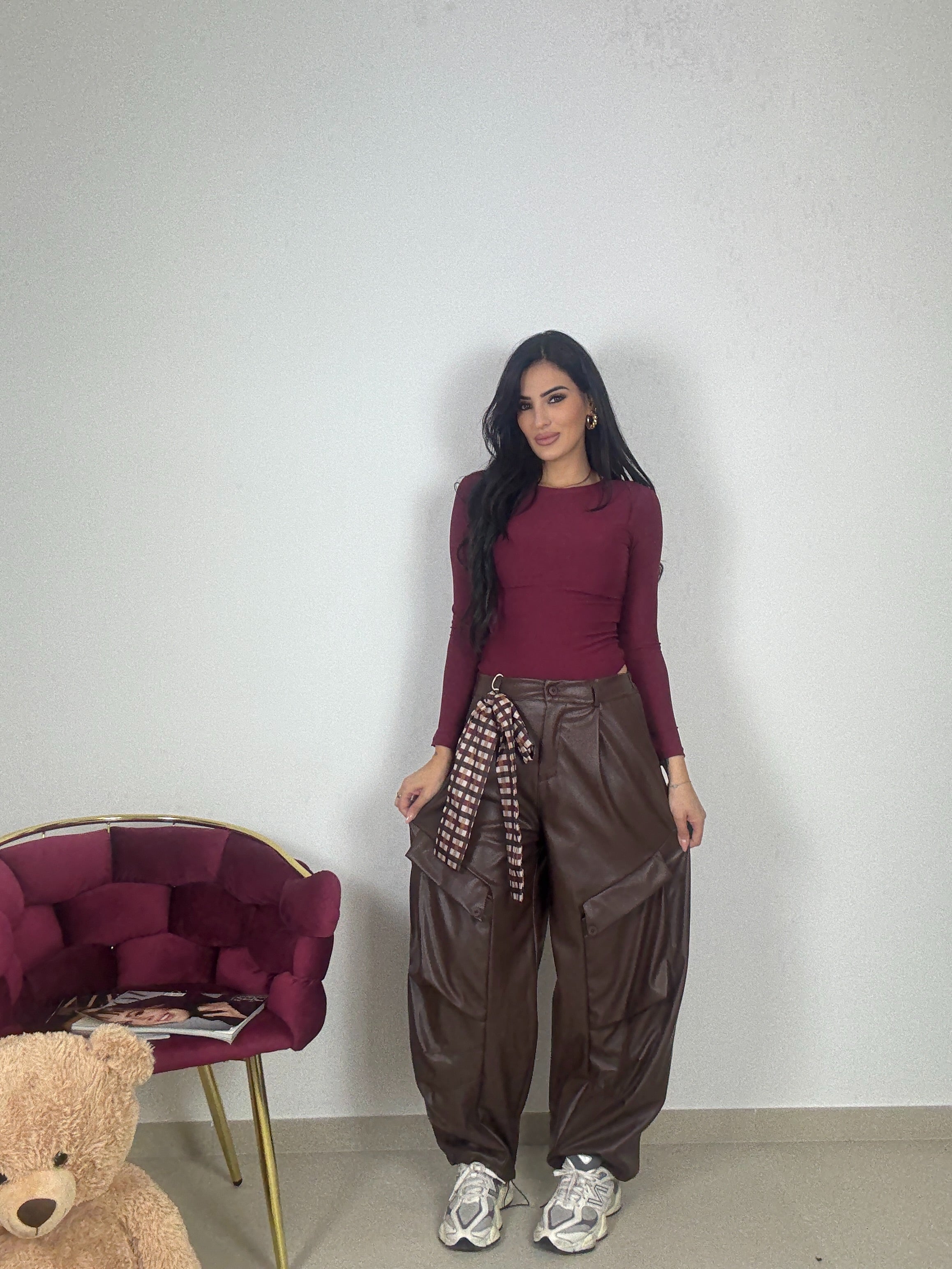 Pantalone , in similpelle , modello ballons , chiusura con zip e bottone , molla in vita sul retro , taglia unica vestibilità consigliata da una S ad una L abbondante