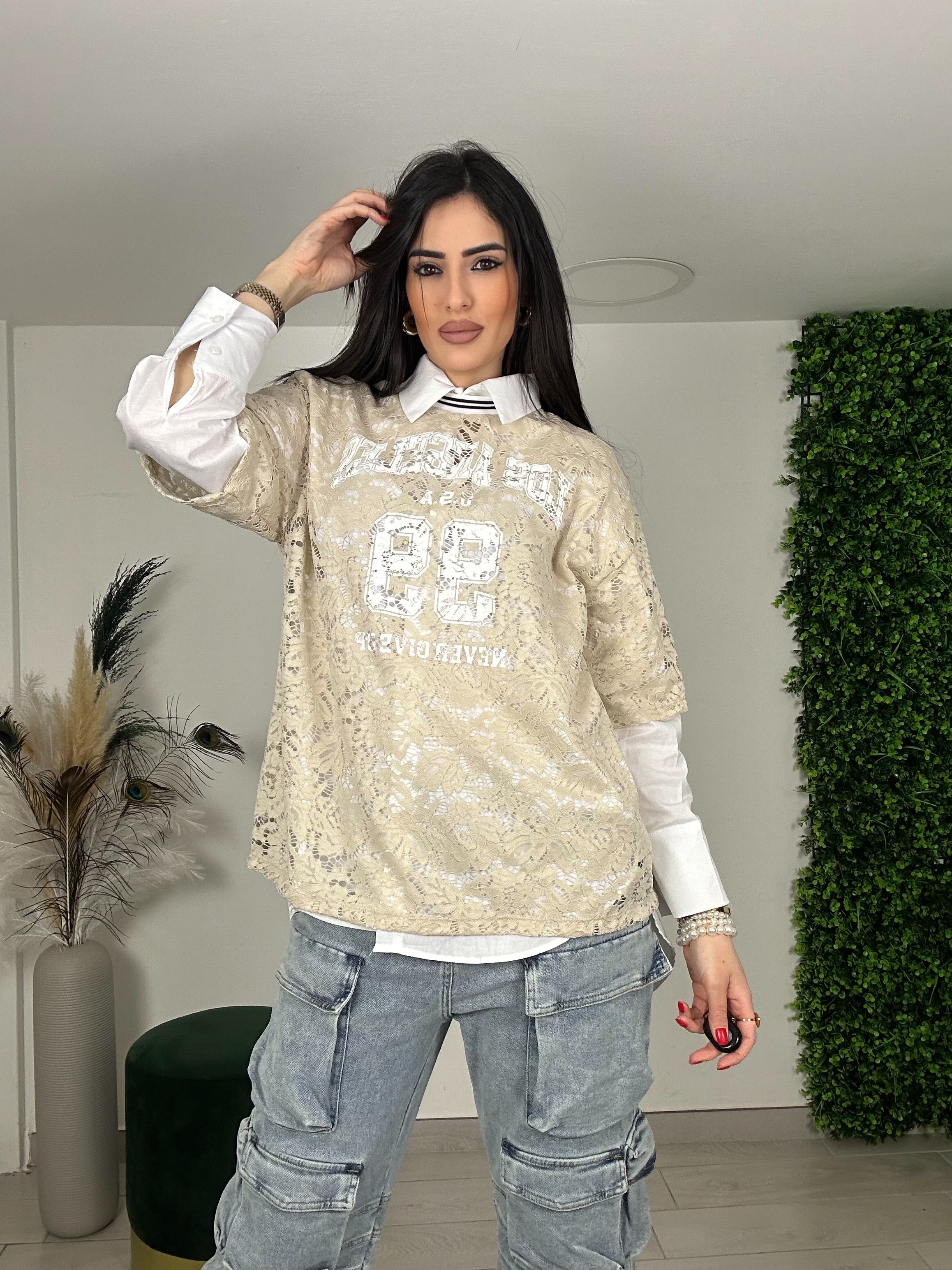 Vi arriveranno a casa due pezzi camicia e maglia in macramè , potete indossarli anche separatamente ,taglia unica vestibilità consigliata da una s ad una L