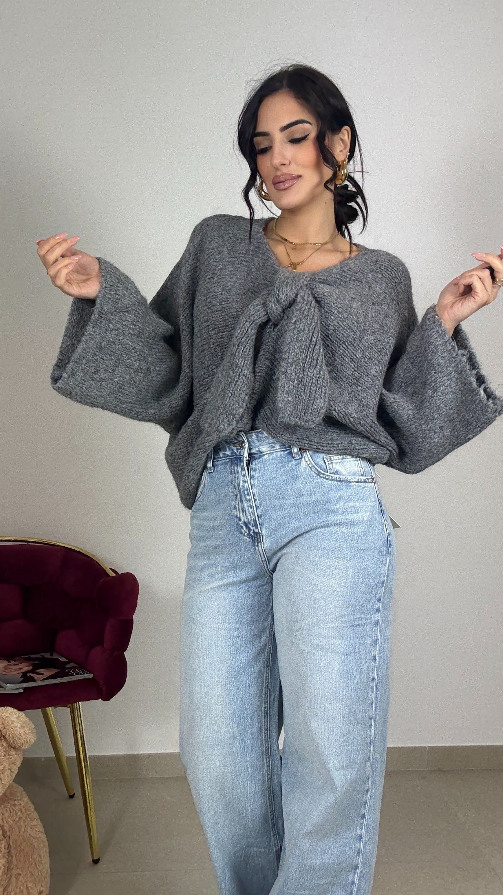 Maglione in lana con fiocco super morbido , taglia unica vestibilità cosnglita da una S ad una L