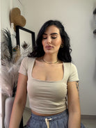 T-shirt in cotone scollo quadrato , taglia unica vestibilità consigliata da una s ad una L