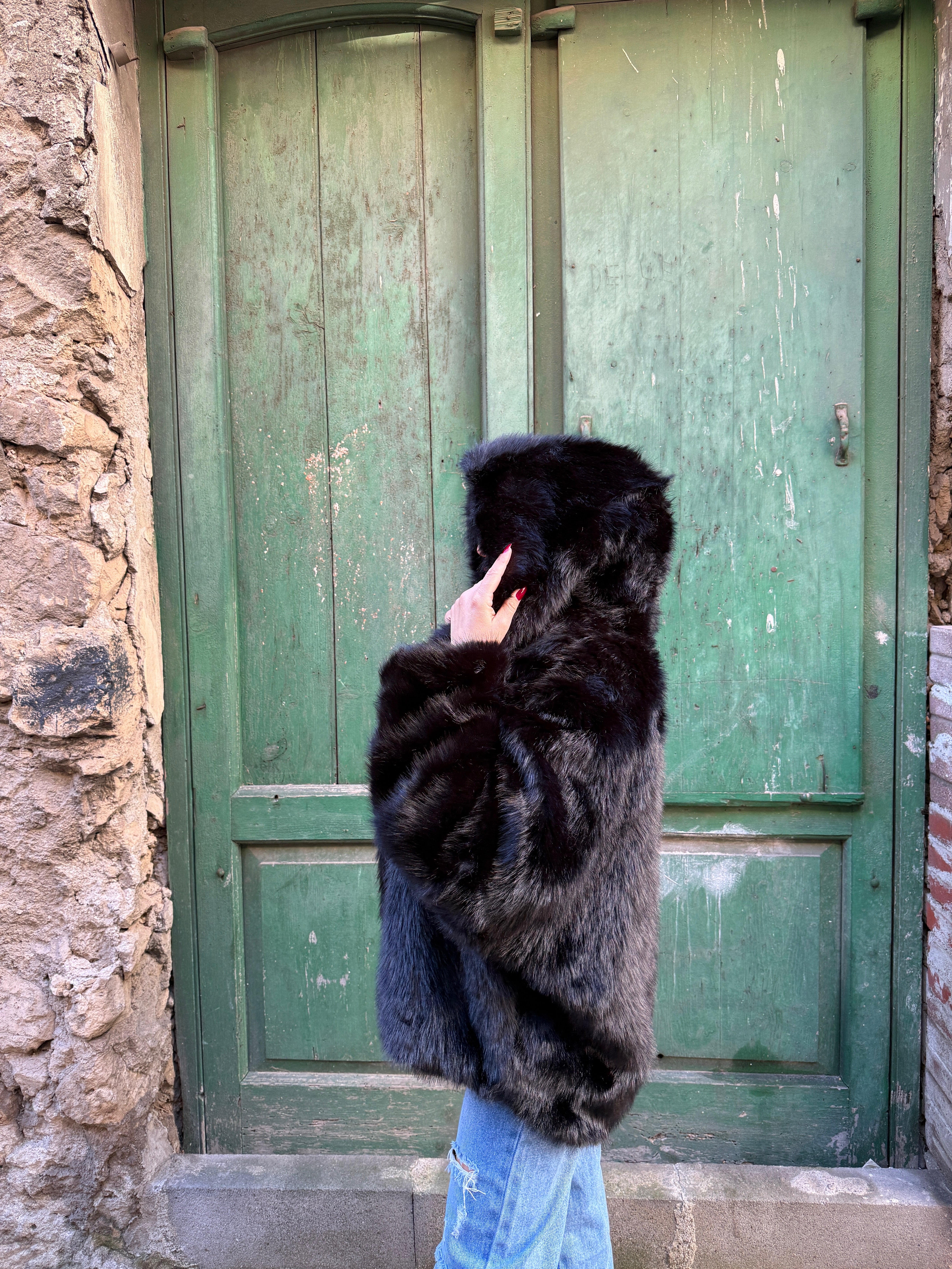 Eco-fur , con cappuccio taglia unica vestibilità consigliata da una S ad una L