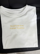 T-shirt con scritta , taglia unica vestibilità consigliata da una S ad una L