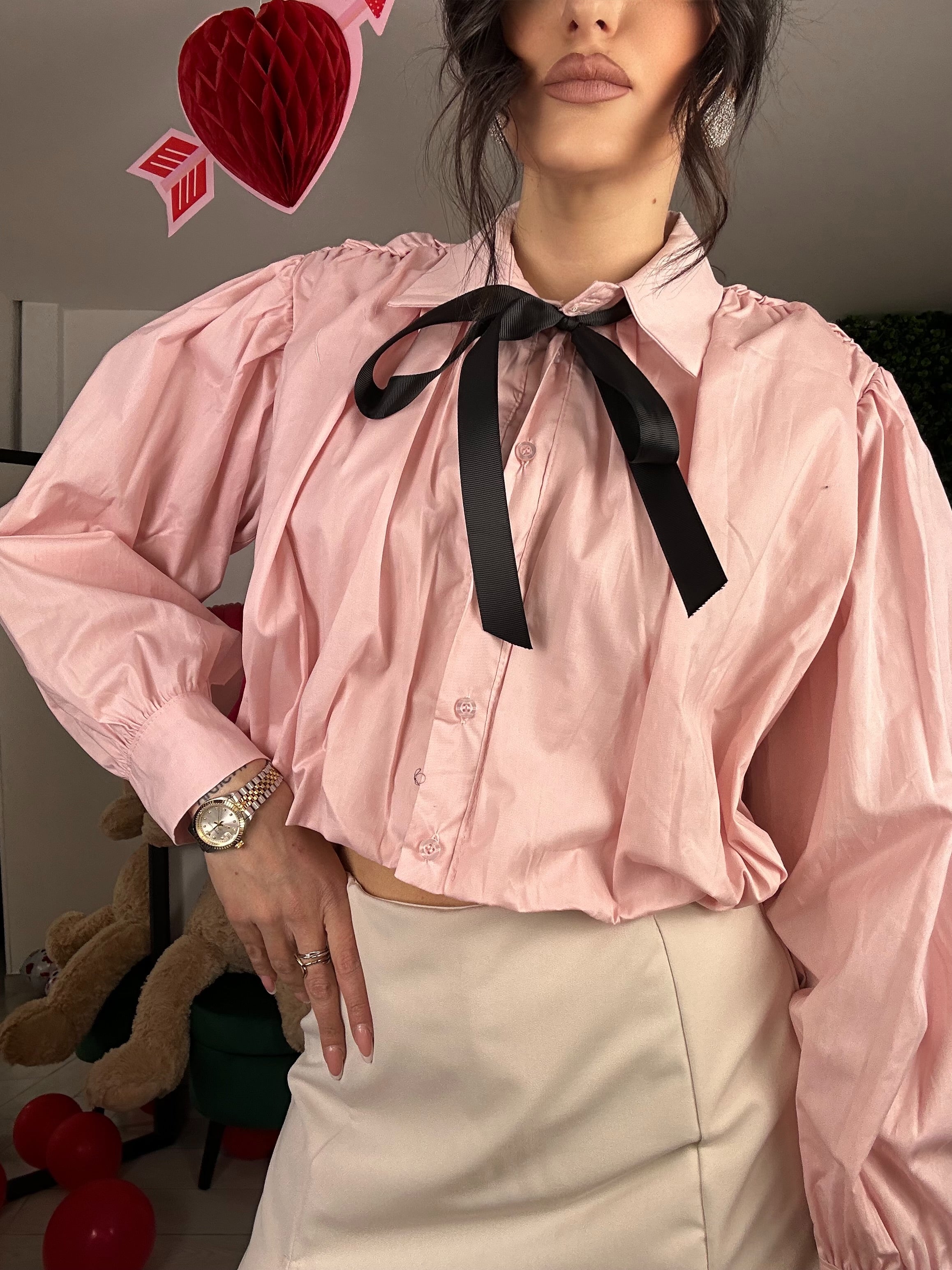 Camicia crop , modello ballons , con fiocchetto removibile , taglia unica Vestibilità consigliata da una xs ad una L