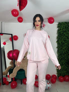 Vi arriveranno a casa due pezzi ,  tuta in cotone garzata , maglia modello over , pantalone modello semi ballons , molla in vita e coulisse regolabile , taglia unica Vestibilità consigliata da una xs ad una L