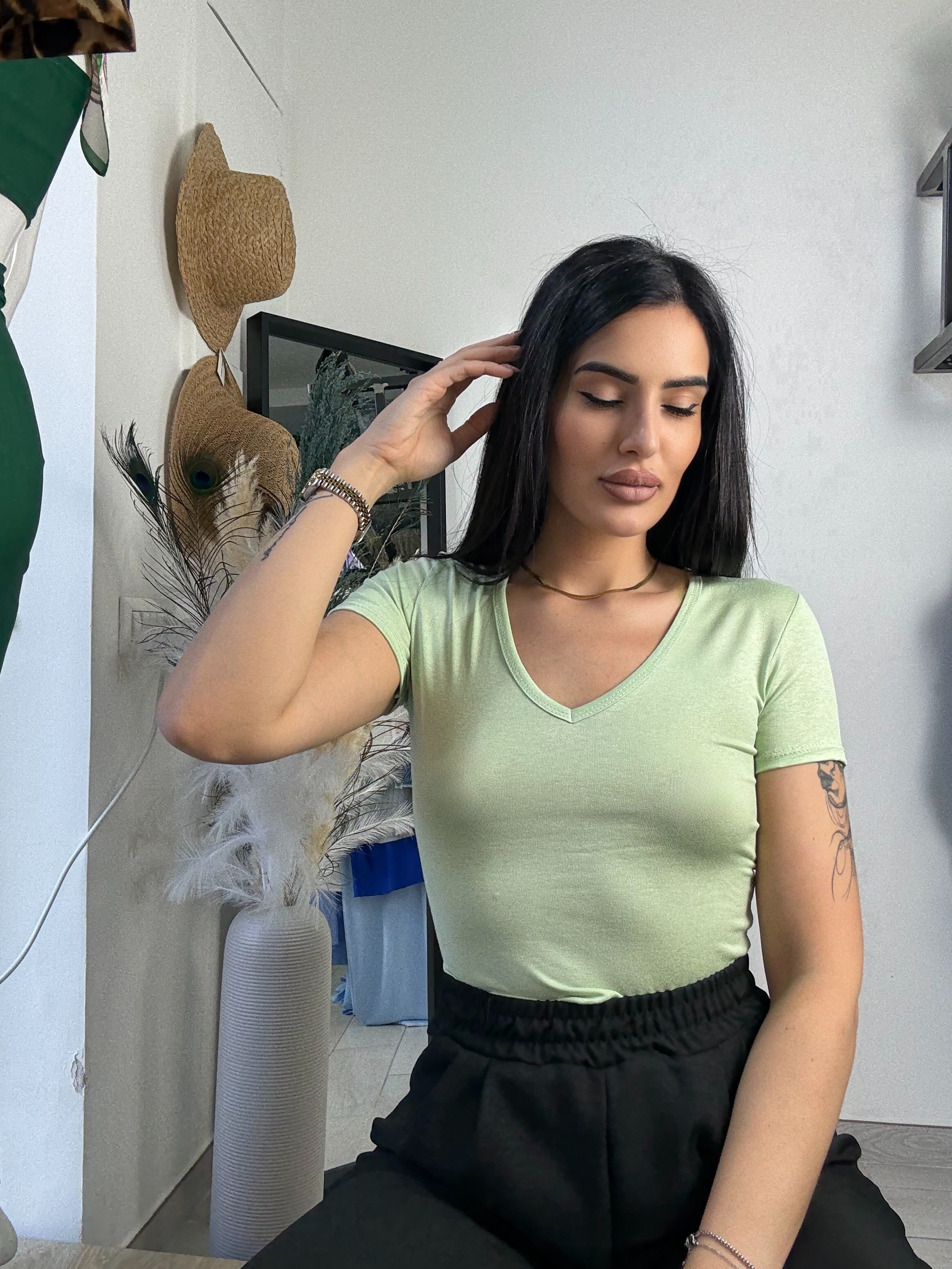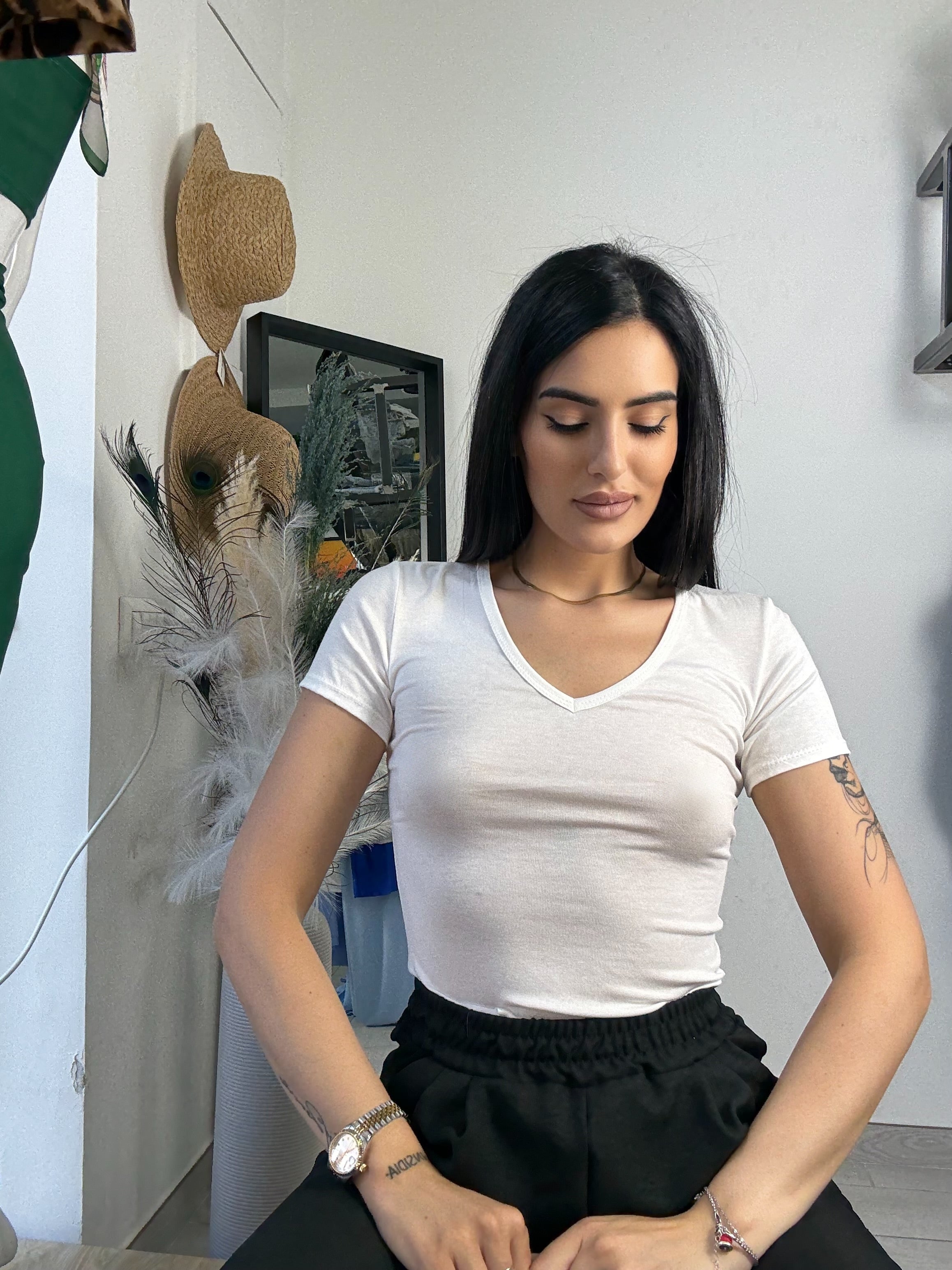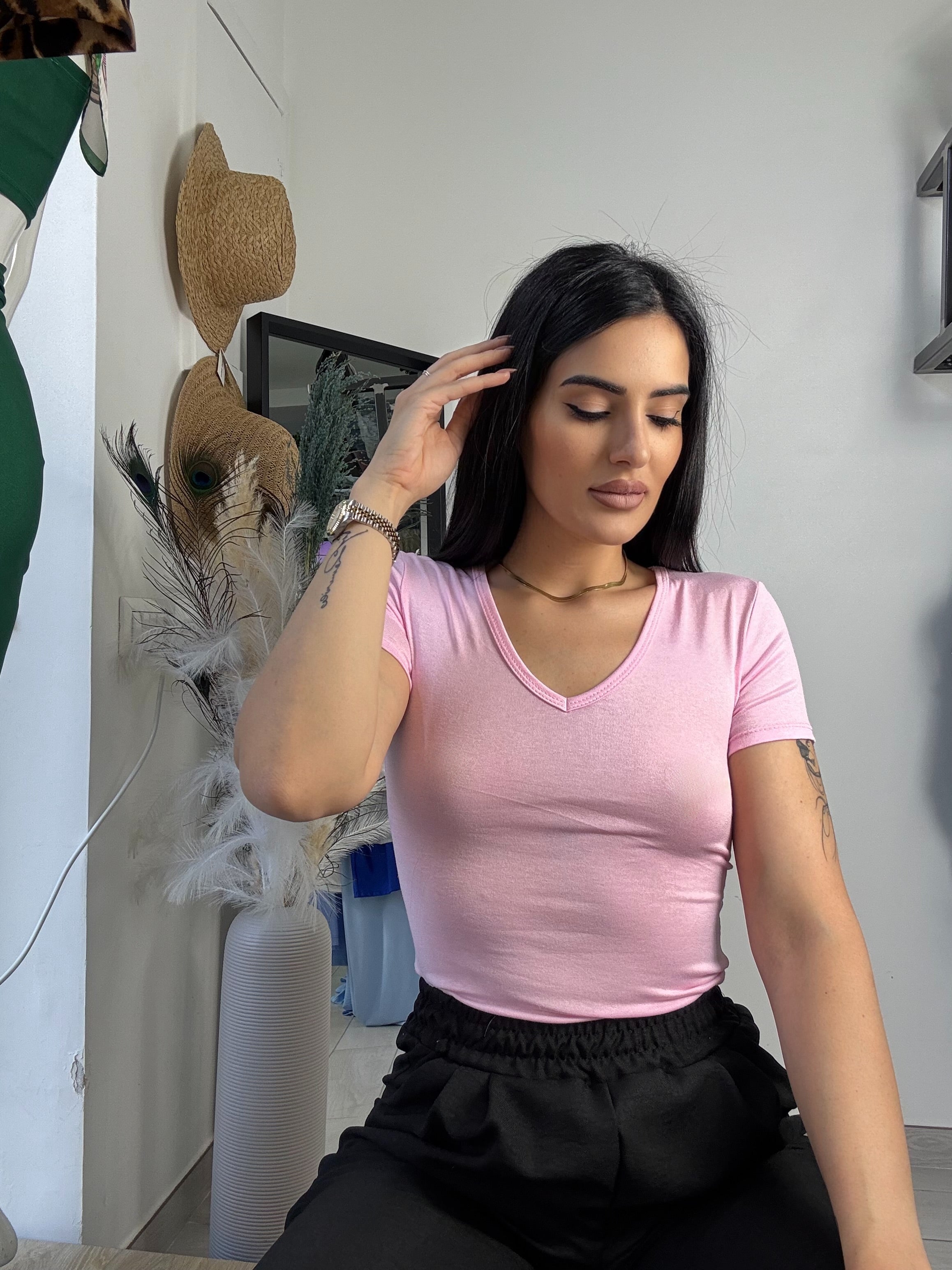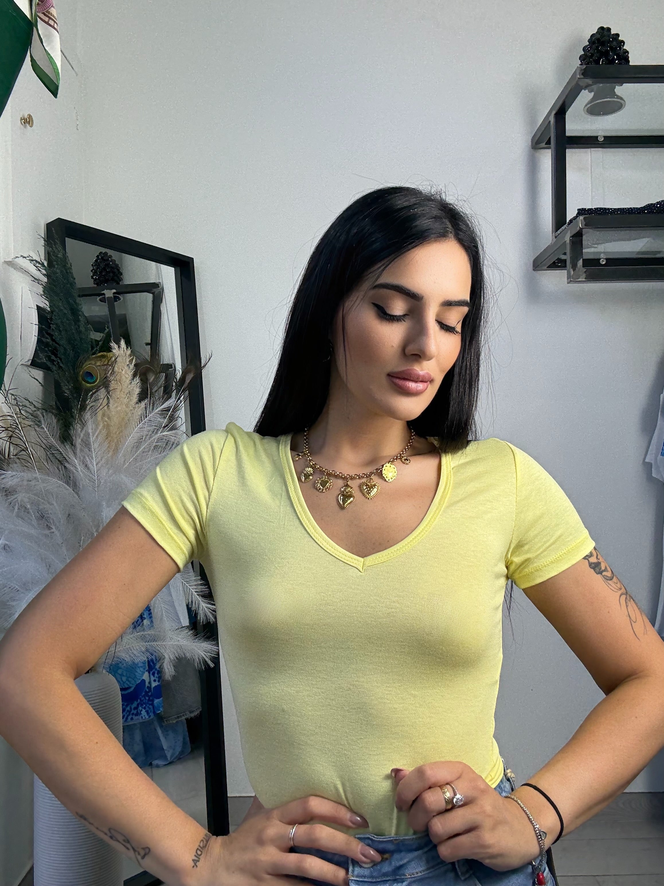 Body in cotone ,scollo a V , elasticizzato, taglia unica vestibilità consigliata da una S ad una L