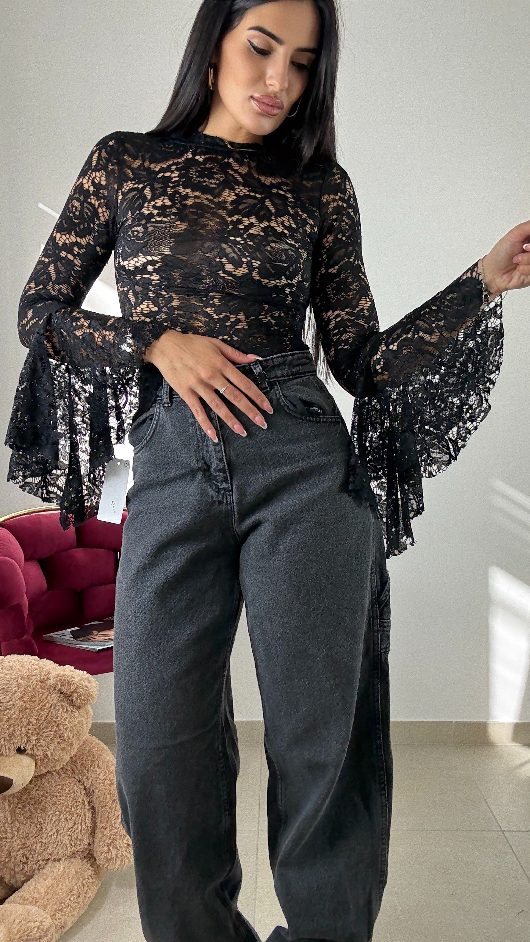 Body macramè , elasticizzato , manica a campanella , taglia unica vestibilità consigliata da una S ad una L