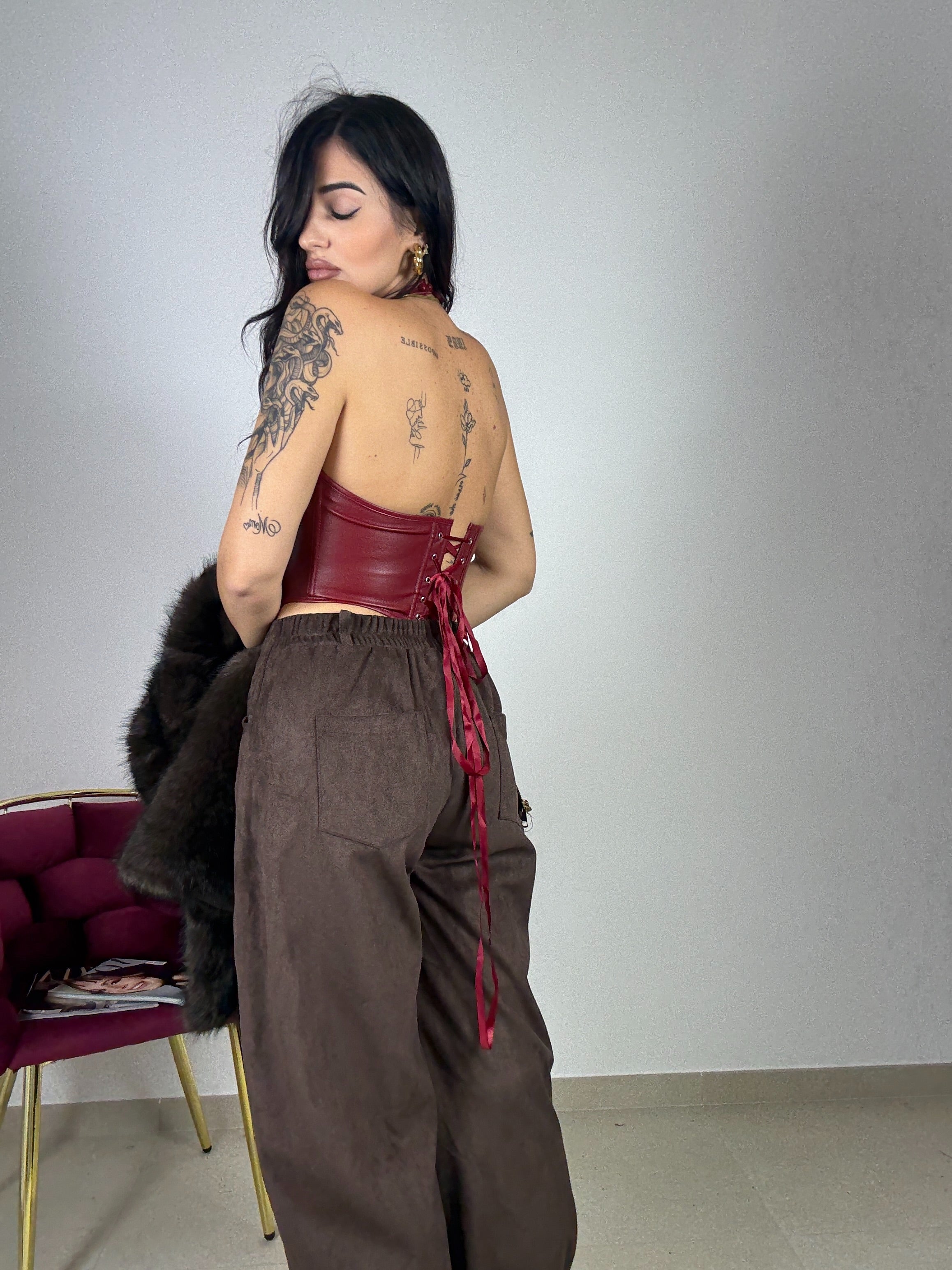Corpetto in similpelle , no. Elastico, stringhe regolabili sul retro , taglia unica , vestibilità consigliata da una S ad una L