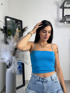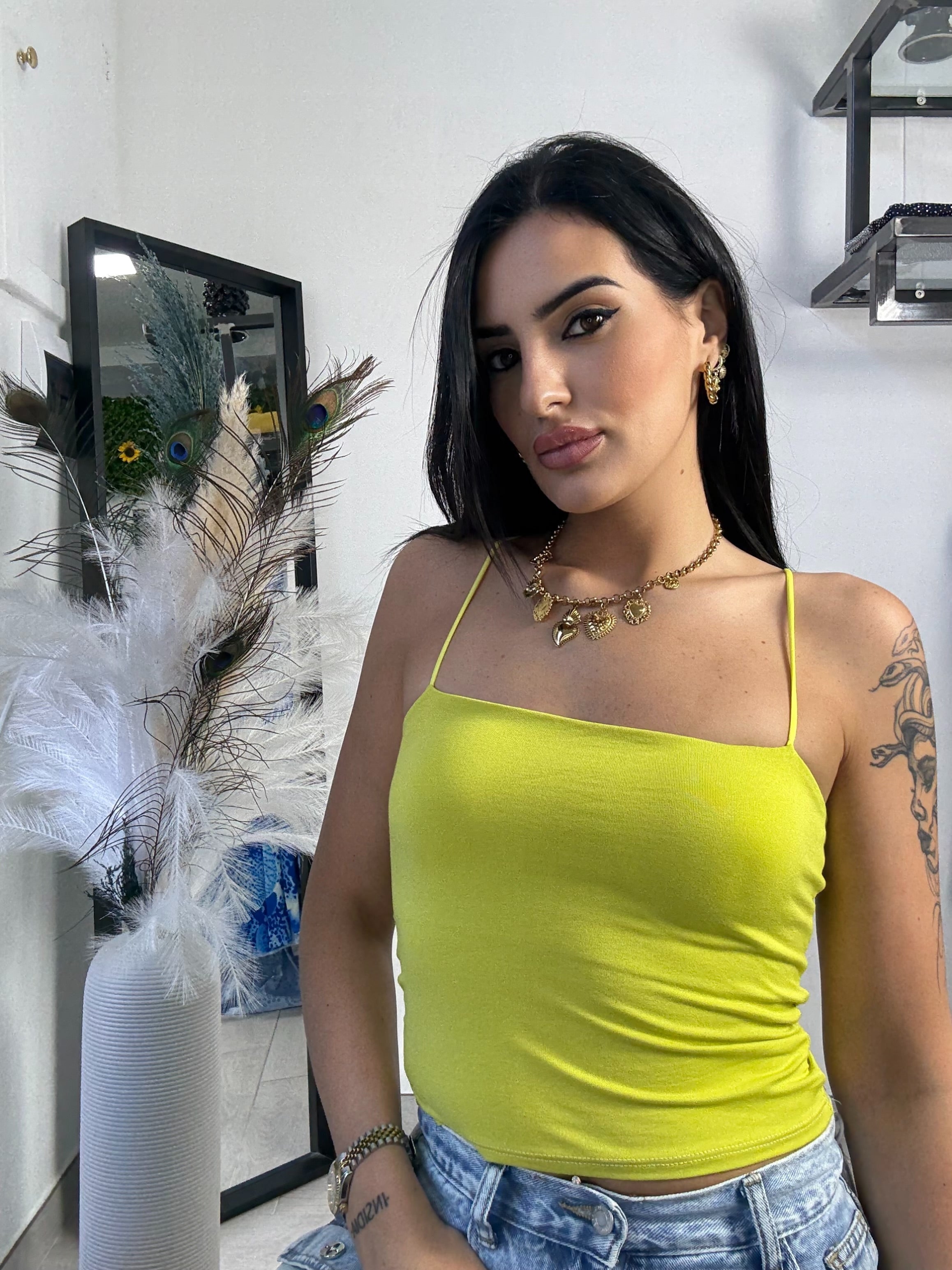 Top in cotone elasticizzato, semplice, coppa preformata , taglia unica vestibilità consigliata da una S ad una L